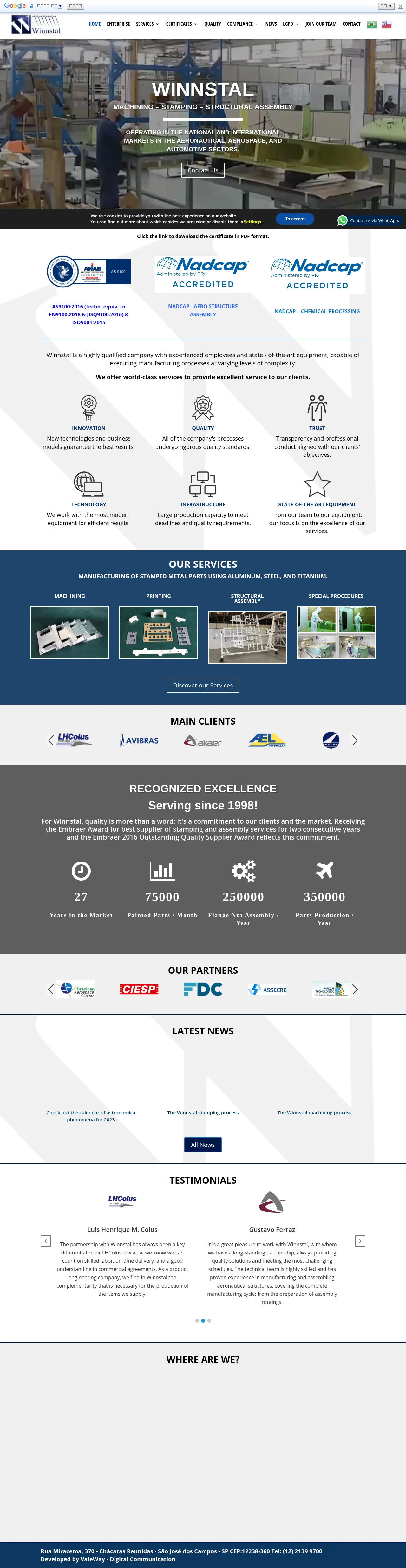 Winnstal is a precision manufacturing company specializing in the production of high-complexity metal components. Their primary services include industrial stamping, CNC machining, and the assembly of complex structural components for the aerospace sector. The company utilizes a workforce of experienced professionals alongside advanced manufacturing infrastructure to ensure high quality and innovation. They provide custom tooling and fixture design to support varied production requirements. Winnstal maintains a commitment to process excellence and is fully compliant with data protection standards.