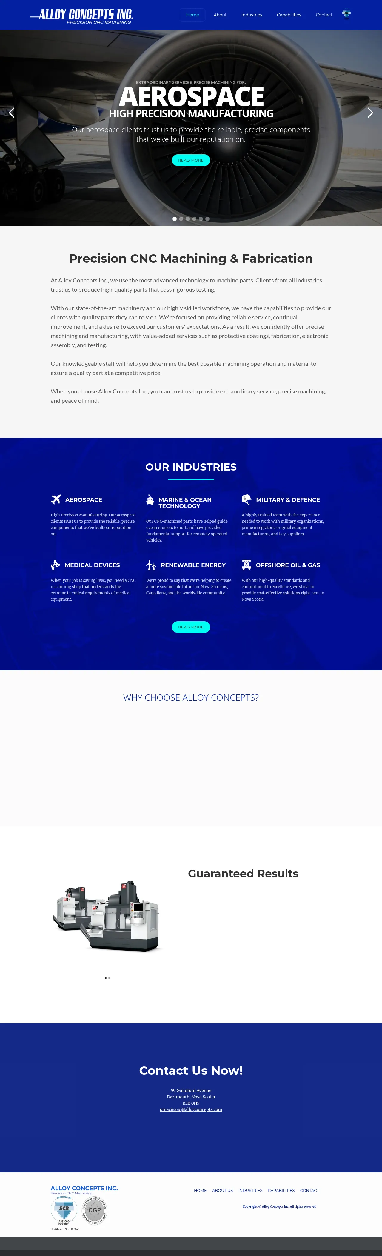 Alloy Concepts Inc. is a precision manufacturing company based in Dartmouth, Nova Scotia, providing CNC machining, fabrication and value-added assembly services. The company supports aerospace, defense, marine and medical customers with high-precision parts and in-house testing. Alloy Concepts maintains certified quality controls and metrology capabilities to ensure parts meet rigorous specifications.