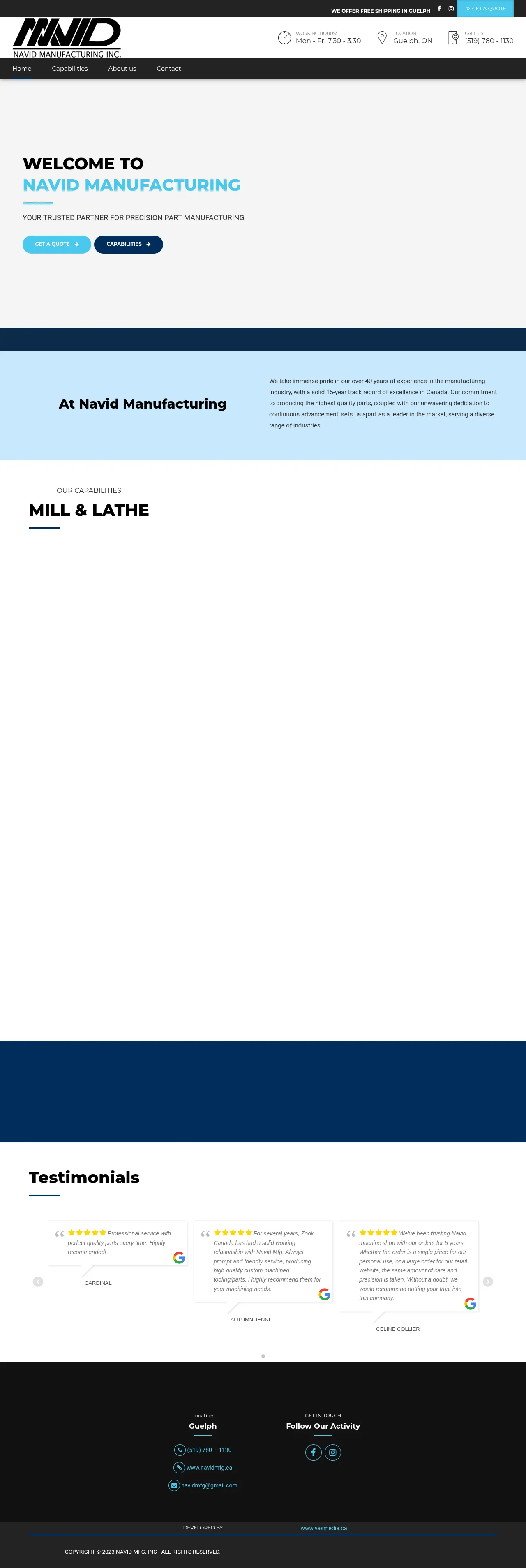Navid Manufacturing is a precision machining provider with over 40 years of industry experience and a 15-year operational history in Canada. The company specializes in custom machined tooling and precision parts, serving a diverse range of industrial sectors. They maintain a focus on production quality and consistent delivery timelines for projects ranging from individual prototypes to large-scale retail orders. By leveraging advanced CNC technology and efficient logistics, they ensure high-precision results for all manufacturing requirements. Their service model emphasizes reliability and professional support throughout the production cycle.