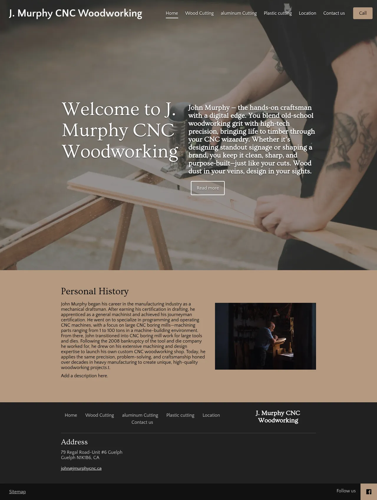 J. Murphy CNC Woodworking is a custom manufacturing shop specializing in precision CNC machining. The company provides cutting, engraving, and mold-making services for wood, aluminum, and plastics. Founded by a master machinist with a background in mechanical drafting and tool and die manufacturing, the shop leverages extensive heavy-industrial experience to deliver high-quality custom components. They support a variety of sectors, ranging from custom signage to industrial parts and molds, focusing on high-precision technical results.