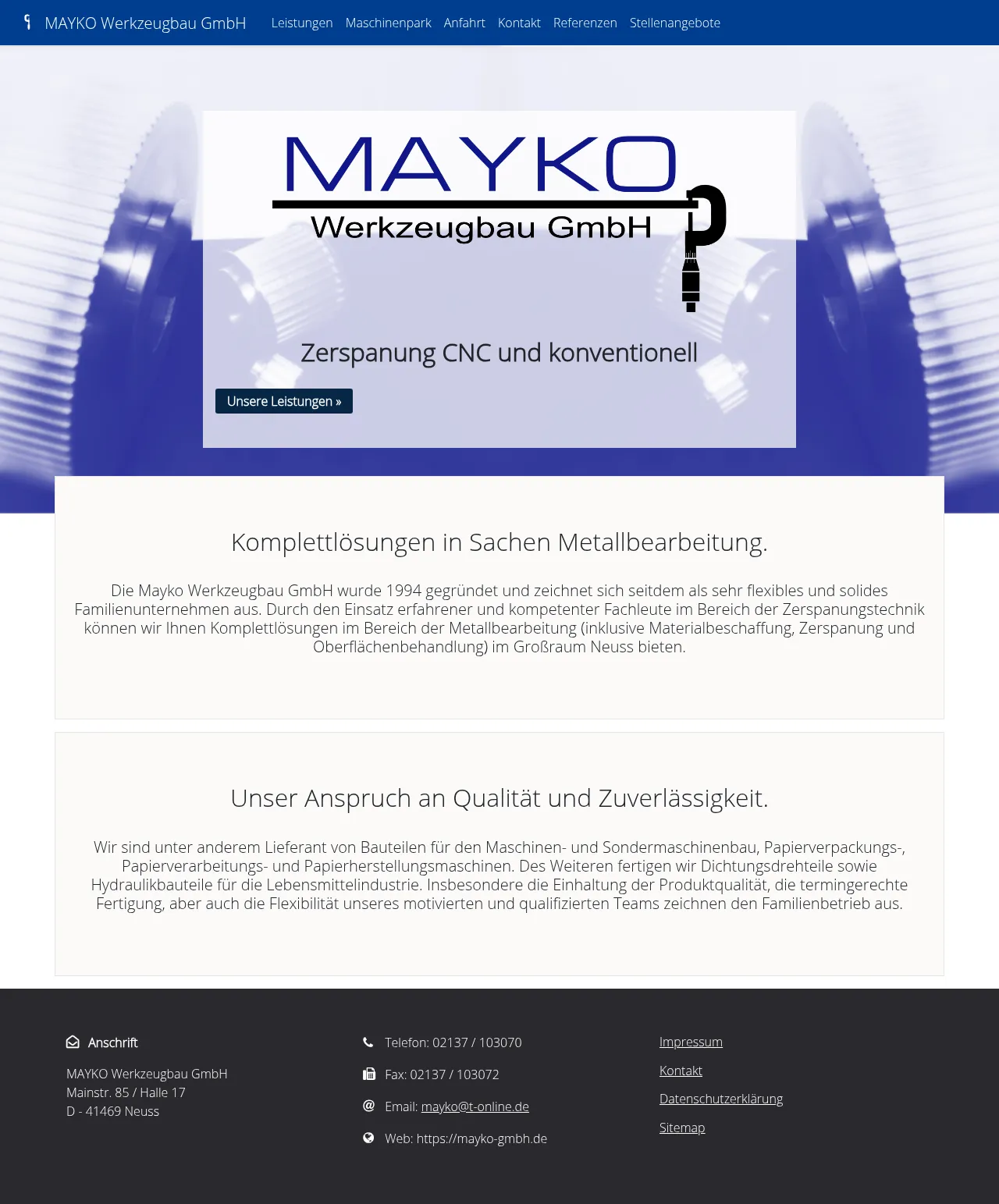 Established in 1994, MAYKO Werkzeugbau GmbH is a family-owned metalworking specialist based in Neuss, Germany. The company provides comprehensive machining solutions, including material procurement, mechanical processing, and surface treatment services. Their expertise serves a wide range of industries, including mechanical and special-purpose machine construction, paper production, and the food industry. Key capabilities include the precision machining of hydraulic components and sealing elements. The firm is recognized for its commitment to high-quality standards, reliable delivery schedules, and the expertise of its technical team.