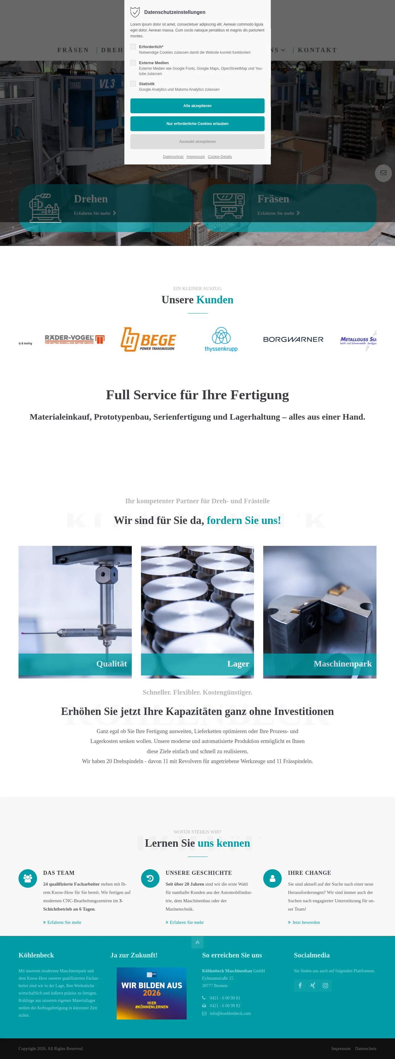 Köhlenbeck Maschinenbau provides comprehensive manufacturing services including prototyping, high-volume serial production, and material warehousing. Specializing in precision CNC turning and milling, the company serves clients across the automotive, machinery, and marine engineering sectors. Their production facility features advanced automated machinery to support efficient, large-scale output and process optimization. With a skilled team of 24 professionals, the firm offers full-service manufacturing solutions tailored to reduce client overhead and lead times. The company emphasizes quality, precision, and reliable supply chain integration for industrial partners.