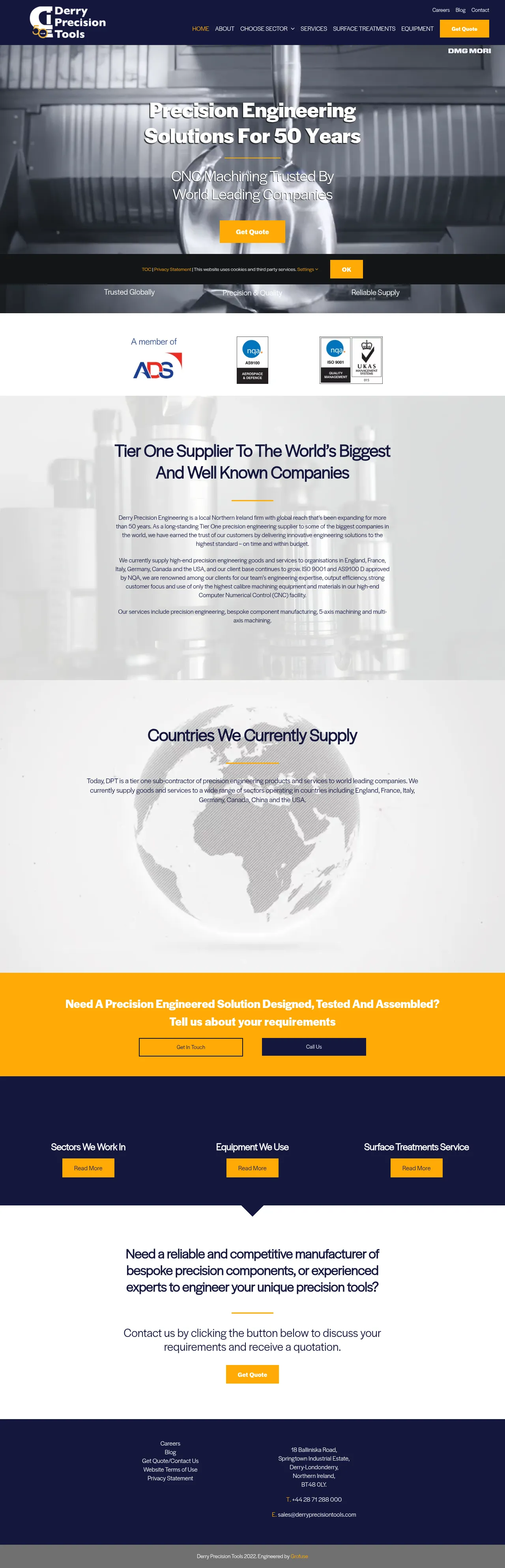Derry Precision Engineering is a long-standing Tier One precision engineering supplier with over 50 years of industry experience. The company specializes in bespoke component manufacturing, offering advanced 5-axis and multi-axis CNC machining services for clients across the aerospace, industrial, and global manufacturing sectors. Utilizing state-of-the-art facilities integrated with CAD/CAM and MRP production control systems, the firm manages complex engineering challenges with high accuracy and efficiency. Their facility is equipped for both specialized machining and comprehensive finishing processes, including anodizing, bead blasting, and ultrasonic cleaning. Derry Precision Engineering is committed to maintaining high production standards through continuous investment in advanced technology and a strong focus on quality control.