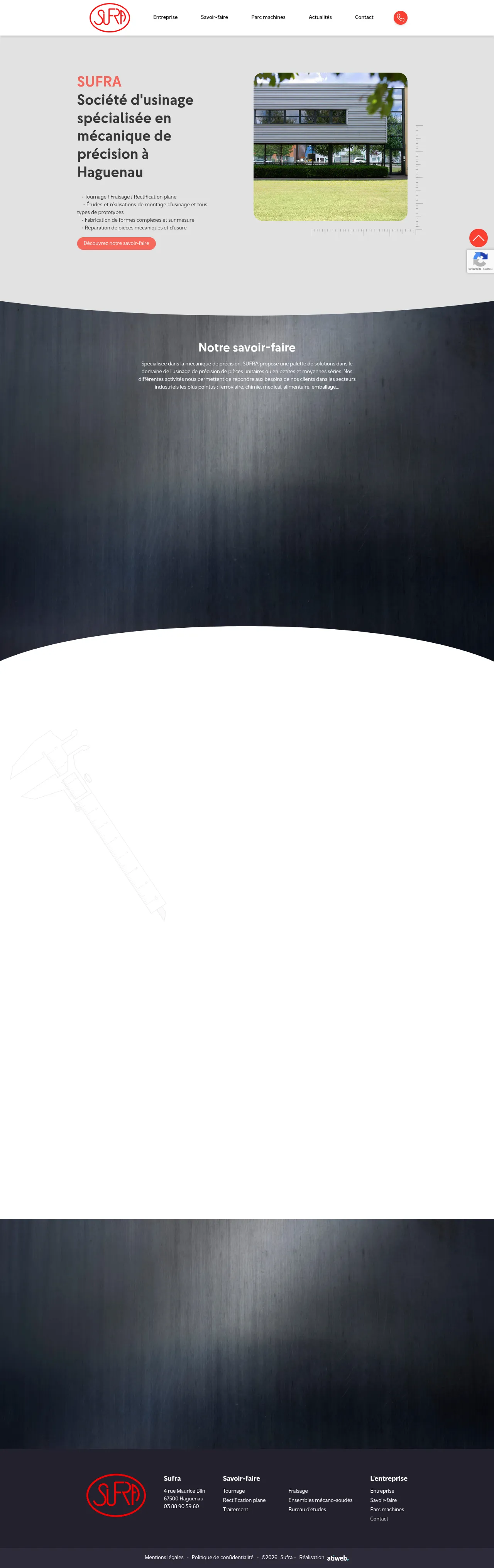 SUFRA is an established precision machining company based in Haguenau, France, with over 40 years of experience in the industry. The firm specializes in high-precision CNC turning, milling, and surface rectification for a variety of industrial applications. Family-operated since its inception in 1984, the company offers end-to-end manufacturing support, from design and engineering to final component production and assembly. They utilize advanced CAD/CAM integration and a modern machine park to ensure tight tolerances and high-quality finishes for both prototype and series production. The business maintains a strong commitment to technological investment and internal quality control standards.