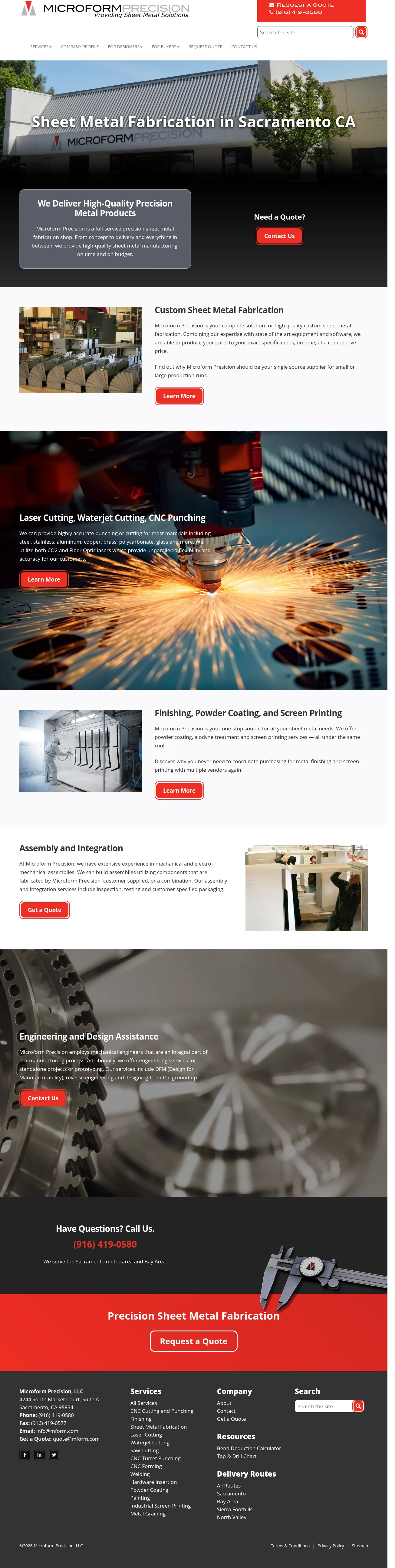 Microform Precision is a full-service sheet metal fabrication company based in Sacramento, California. They offer comprehensive manufacturing solutions ranging from initial design and engineering support to final assembly and integration. Their core services include precision CNC laser and waterjet cutting, CNC turret punching, forming, welding, and various finishing processes. The company serves diverse industries, providing custom parts to clients throughout Northern California and the Bay Area. By utilizing advanced CAD/CAM software and in-house finishing capabilities, they maintain strict quality control throughout the production cycle.