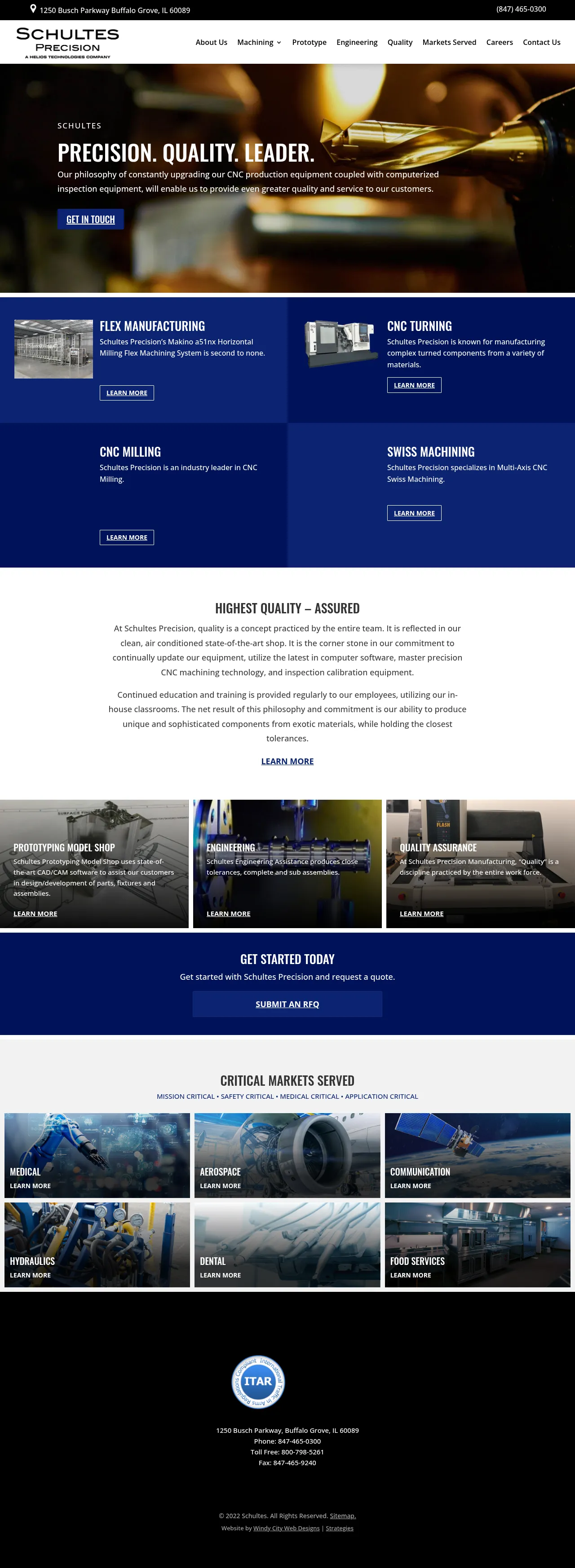 Schultes Precision Manufacturing specializes in multi-axis CNC Swiss machining, turning, and milling services for complex components. The company operates a state-of-the-art, climate-controlled facility and provides end-to-end support ranging from prototyping and CAD/CAM design to production. They serve highly regulated sectors including the aerospace, medical, communications, and hydraulics industries. Committed to precision and quality, the firm utilizes advanced inspection technology and regular in-house training to maintain high tolerance standards. Their service model emphasizes flexibility and technical expertise in handling sophisticated manufacturing requirements.