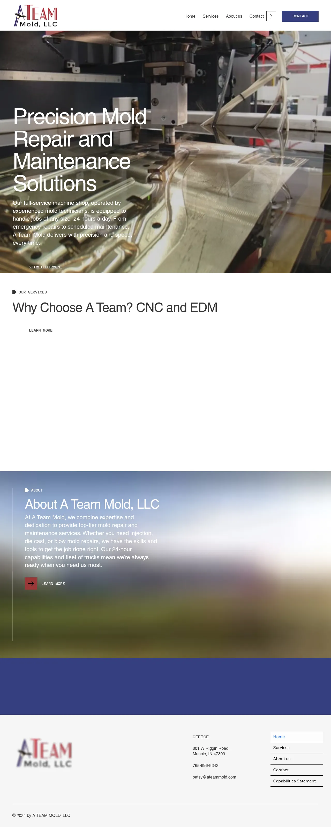A Team Mold is a full-service machine shop based in Muncie, Indiana, specializing in precision repair and maintenance for industrial tooling. The company provides technical support for injection, die cast, and blow mold systems. Operating 24 hours a day, the facility offers emergency repair services and scheduled maintenance programs to minimize production downtime. Its service capabilities are supported by dedicated logistics and transportation services. The shop serves a diverse manufacturing client base requiring rapid turnaround and high-precision technical solutions.