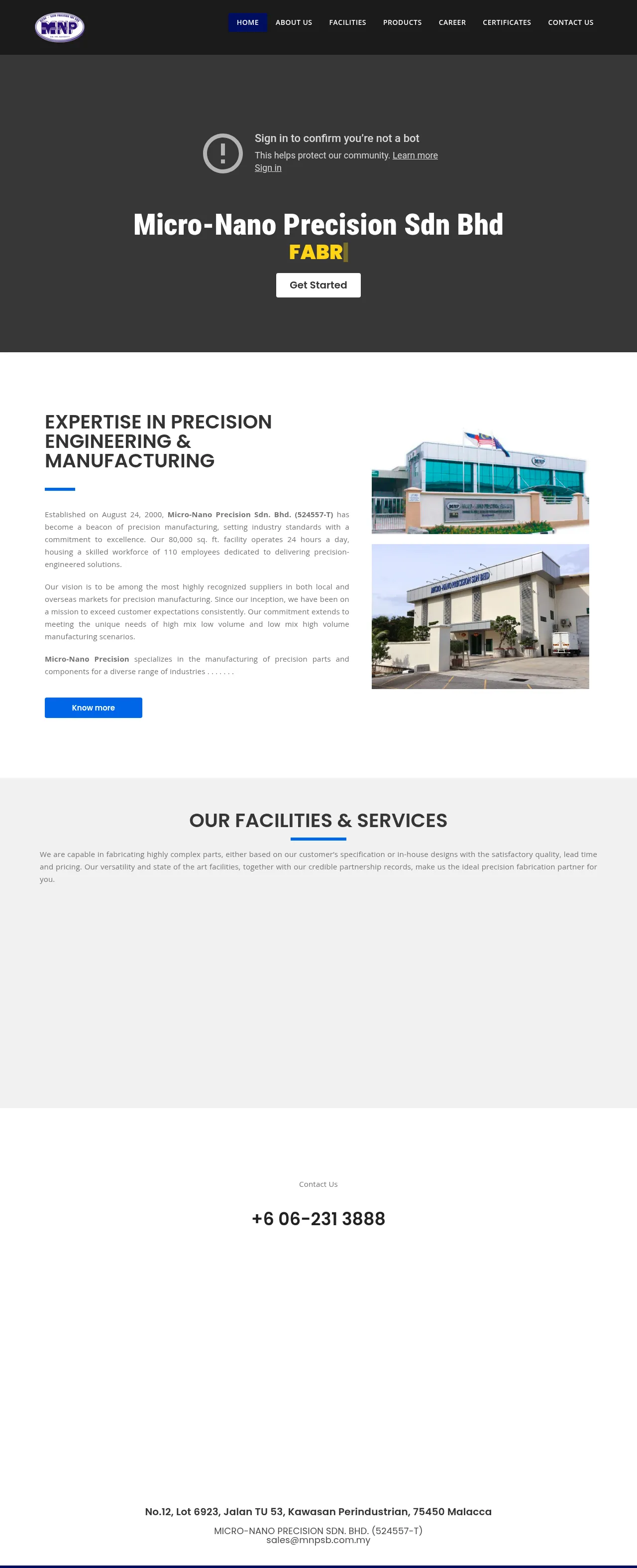 Micro-Nano Precision Sdn Bhd is a precision manufacturing facility established in 2000 and based in Malacca, Malaysia. Operating a 80,000 sq. ft. facility with a 24-hour production schedule, the company provides custom engineering solutions for the semiconductor, automation, aerospace, automotive, and medical industries. They specialize in the fabrication of highly complex parts for both high-mix, low-volume and low-mix, high-volume manufacturing requirements. Their core capabilities include precision machining, jig and fixture assembly, and tool production, supported by a workforce of over 100 skilled professionals. The company focuses on delivering parts to customer specifications with an emphasis on quality, competitive pricing, and efficient lead times.
