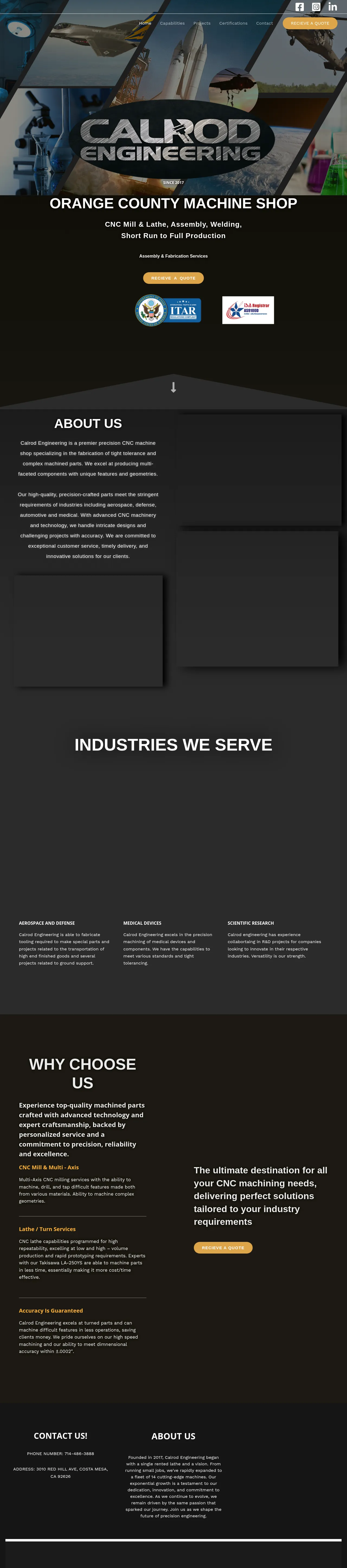 Calrod Engineering is a precision manufacturing facility specializing in high-speed CNC machining for the aerospace, defense, medical, and scientific research industries. Founded in 2017, the company provides comprehensive solutions ranging from complex prototype development to full-scale production runs. Their core capabilities include multi-axis milling, precision turning, and sinker EDM services, maintaining dimensional accuracy within ±.0002″. Utilizing a fleet of 14 advanced machines, the company supports ground support projects and high-end finished goods fabrication. They emphasize stringent quality standards and are currently finalizing industry-recognized quality management system certifications.