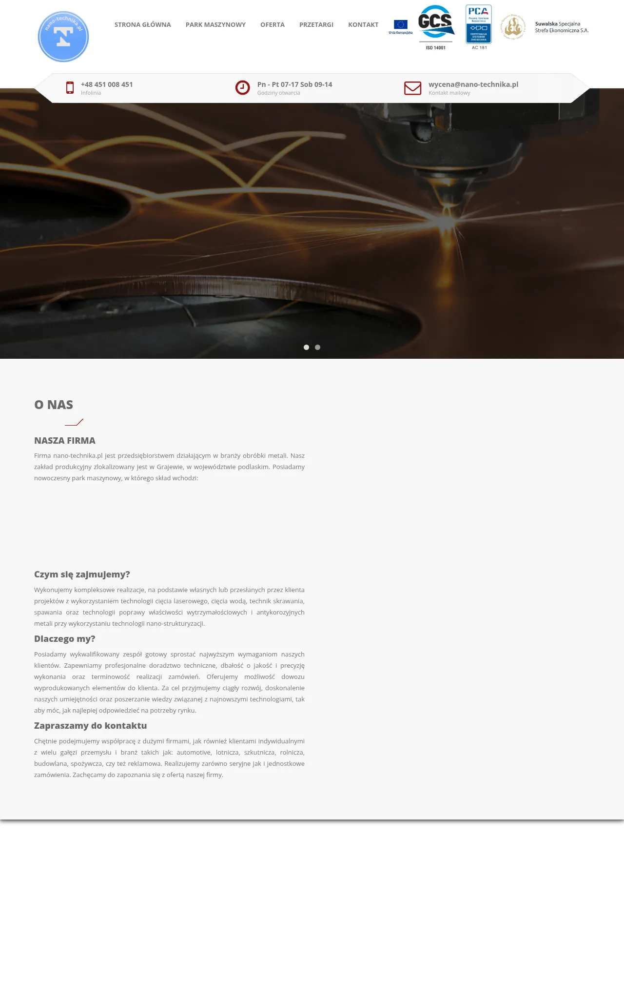 Located in Grajewo, Poland, nano-technika.pl is a professional metalworking facility specializing in precision manufacturing services. The company provides a range of processing capabilities including laser cutting, waterjet machining, welding, and advanced nanostructuring for enhanced material durability. They serve a diverse clientele across sectors such as automotive, aerospace, shipbuilding, construction, and agriculture. The facility manages both high-volume serial production and custom one-off projects based on client-provided specifications. Committed to technical excellence, the company maintains a modern machine park and offers professional technical consulting and logistics support.