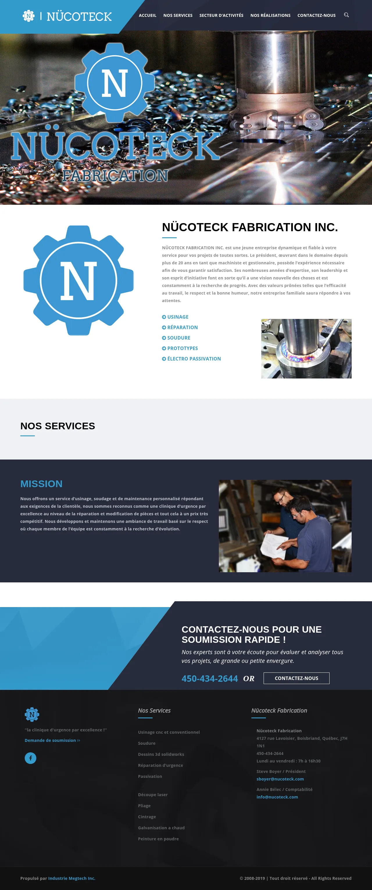 Nücoteck Fabrication Inc. is a full-service metal fabrication and machining provider specializing in both CNC and conventional manufacturing. The company offers a wide range of services including precision welding, 3D design using SolidWorks, laser cutting, and metal forming. They act as a specialized emergency repair facility, focusing on the modification and repair of industrial components. With over 20 years of experience, the firm serves diverse clients through a combination of technical expertise and rapid-response manufacturing. Their operations include secondary processes such as passivation, powder coating, and hot-dip galvanizing, supported by a dedicated material supply inventory.