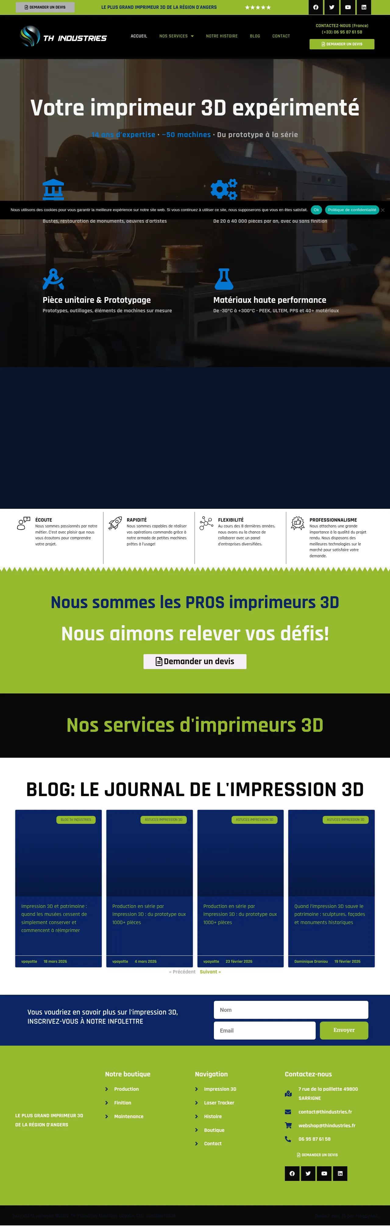 TH Industries is a prominent 3D printing service provider based in the Angers region of France. The company specializes in manufacturing custom parts, prototypes, and serial production runs exceeding 1,000 units. They offer comprehensive end-to-end solutions, including design consultation, professional finishing, and ongoing maintenance support. Utilizing a wide range of high-performance engineering thermoplastics, the facility serves diverse industrial applications requiring thermal and structural durability. Their operational approach focuses on rapid turnaround times, manufacturing flexibility, and technical expertise in additive manufacturing.