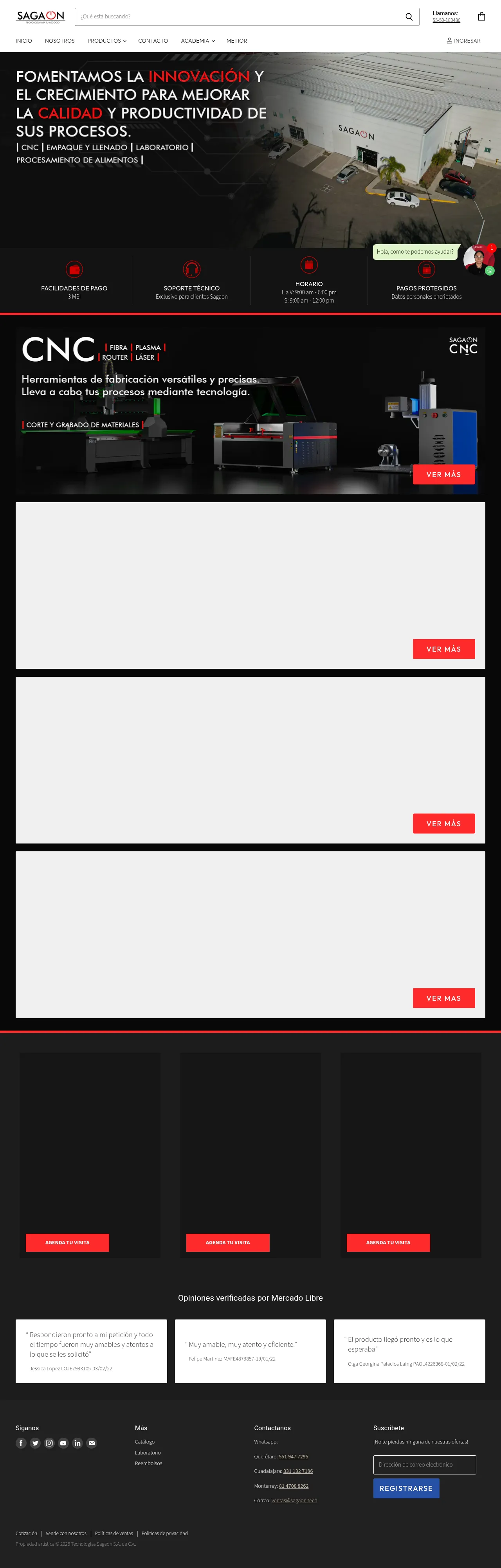 Tecnologías Sagaon S.A. de C.V. specializes in the distribution and integration of industrial machinery for manufacturing and laboratory applications. Their core product offerings include CNC equipment, such as lasers, routers, and plasma cutters, alongside various liquid filling, grain, and powder packaging solutions. The company provides technical support, equipment configuration services, and basic operator training to assist businesses in scaling their production capacity. They serve a diverse range of sectors, including food processing and laboratory research, by focusing on automation technology and process optimization. Clients can access consultation for custom project requirements and benefit from established post-sales support and warranty programs.