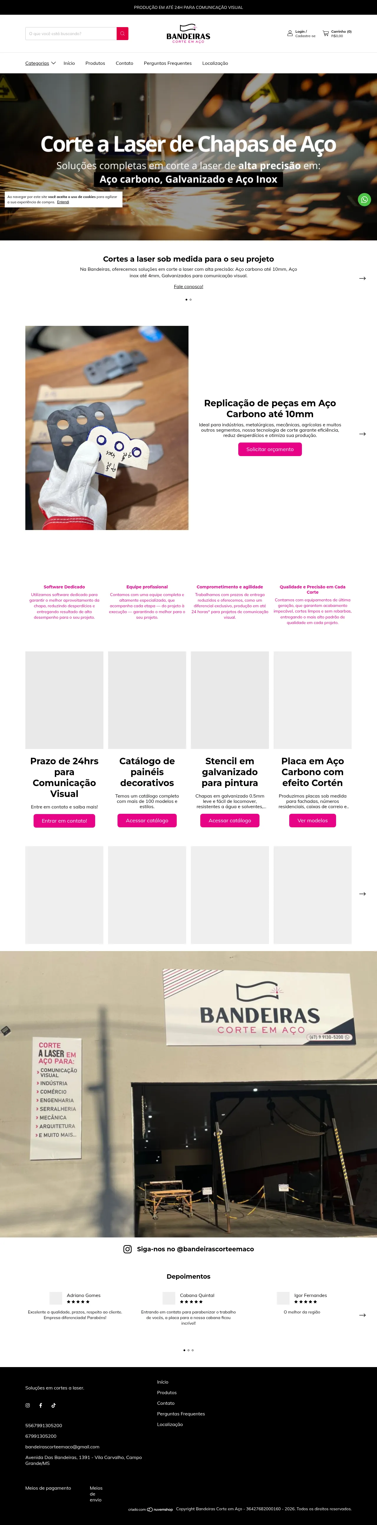 Bandeiras Corte em Aço specializes in precision laser cutting services for a diverse range of sectors, including industrial, mechanical, agricultural, and visual communication. The company utilizes advanced CAD software to optimize material utilization and minimize waste, ensuring cost-efficiency for every project. Their capabilities include custom metal cutting, stencil production, and the manufacturing of bespoke architectural elements such as address plates and decorative panels. The firm serves clients nationwide, offering expedited 24-hour production turnarounds for specific visual communication projects and flexible processing options for customer-supplied materials.
