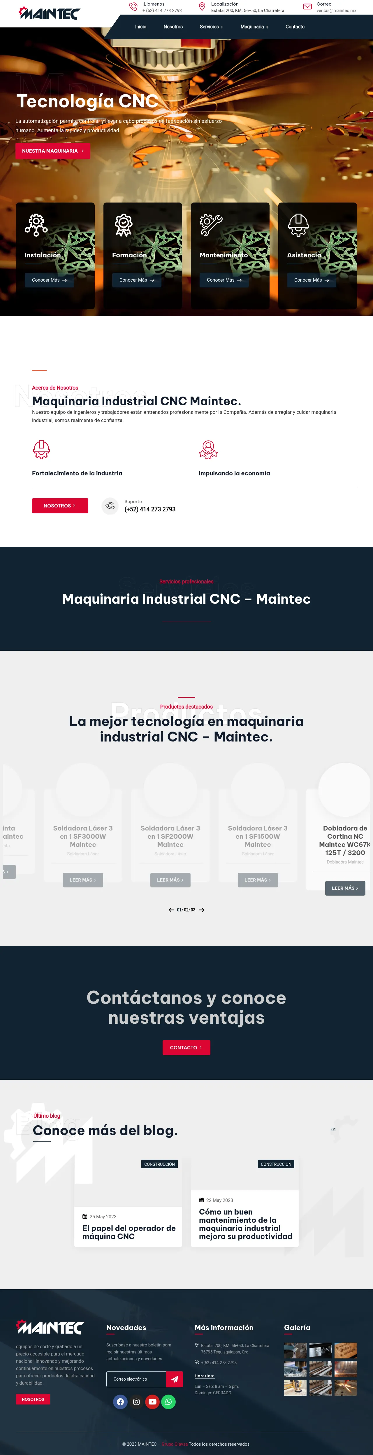 Maintec provides advanced industrial CNC machinery and automation solutions to enhance manufacturing efficiency and production speed. The company specializes in supplying high-precision equipment for metalworking, woodworking, and industrial construction applications. Beyond machinery distribution, they offer professional technical consulting, equipment installation, and operator training programs to ensure optimal performance. Comprehensive maintenance and support services are provided to maximize equipment longevity and reliability. Based in Mexico, Maintec supports local industrial growth through accessible, high-quality manufacturing technology.