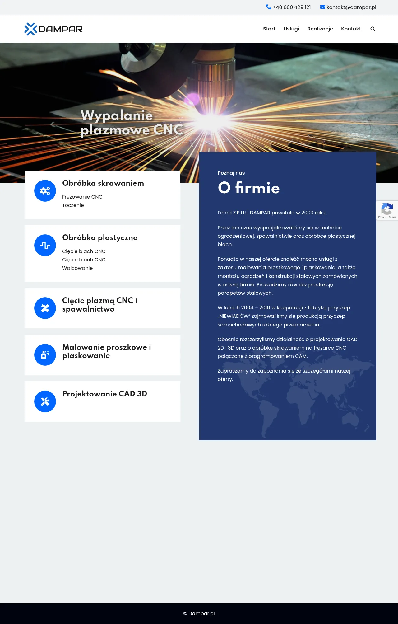 Established in 2003, Z.P.H.U DAMPAR is a Polish manufacturing company specializing in precision metal processing and steel construction. Their core capabilities include CNC machining, plastic deformation, laser cutting, and welding services. The company provides a comprehensive suite of solutions ranging from professional CAD 3D design to finishing processes like powder coating and sandblasting. Beyond general fabrication, they produce specialized steel sills and provide installation services for fencing and various steel structures. With a background in trailer production, the firm leverages its technical expertise to deliver versatile metalworking solutions for diverse industrial and architectural applications.