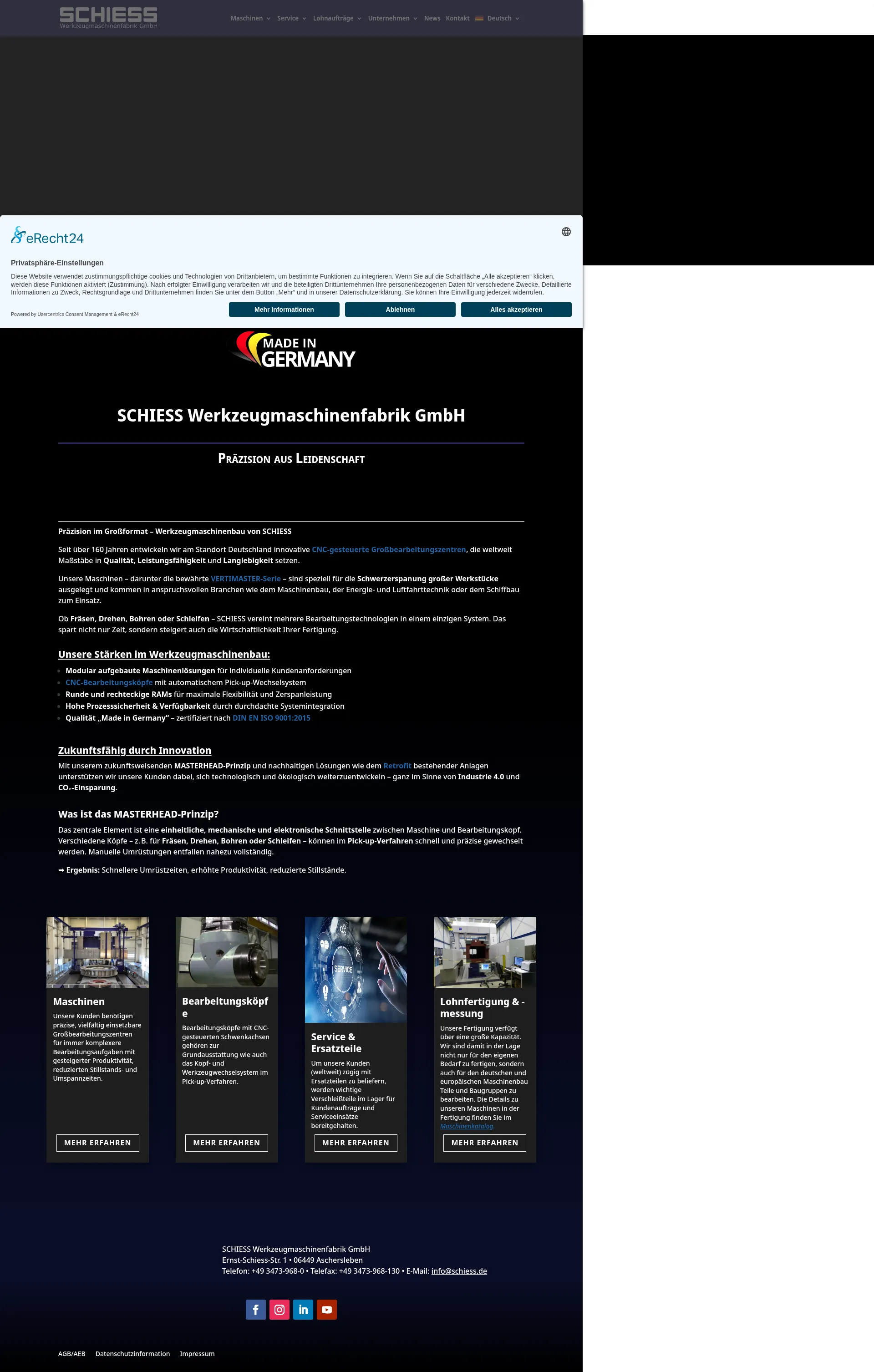 SCHIESS Werkzeugmaschinenfabrik GmbH is a German manufacturer specializing in large-scale CNC-controlled machining centers. With over 160 years of engineering experience, the company serves complex industries including mechanical engineering, aerospace, power generation, and shipbuilding. Their expertise includes the development of modular machine solutions and the patented MASTERHEAD system, which integrates multiple machining technologies into a single unit. In addition to manufacturing, the company offers contract manufacturing, precision measurement services, and comprehensive machine retrofitting. They focus on improving production efficiency by reducing machine downtime and optimizing complex machining tasks.