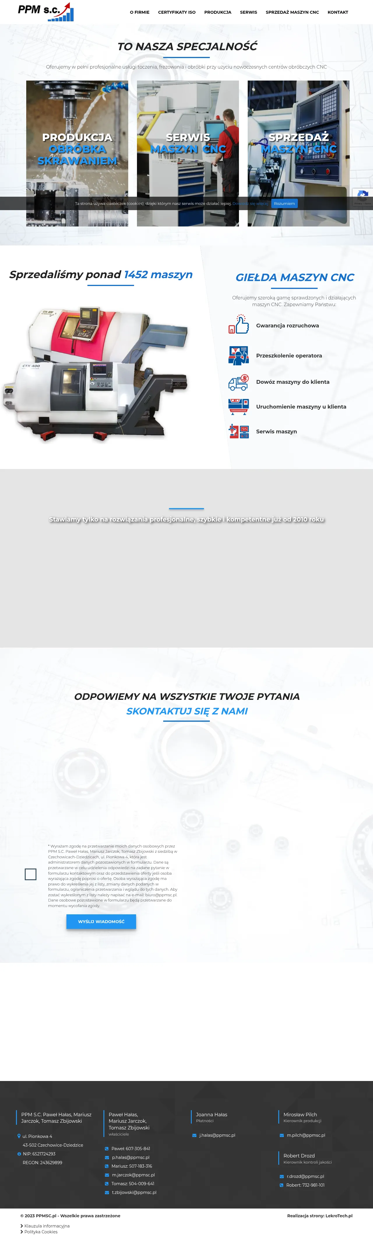 PPM S.C. is an industrial manufacturing firm based in Poland that specializes in professional CNC machining services. Since 2010, the company has provided high-precision turning, 3-axis to 5-axis milling, and electrical discharge machining. They also offer comprehensive services including equipment repair, the manufacturing of custom production lines, and the sale of CNC machines. Serving a broad European client base, the company focuses on reliable, high-quality production tailored to specific customer needs. Their operations are supported by a modern machine park and a dedicated team focused on technical support and machine commissioning.