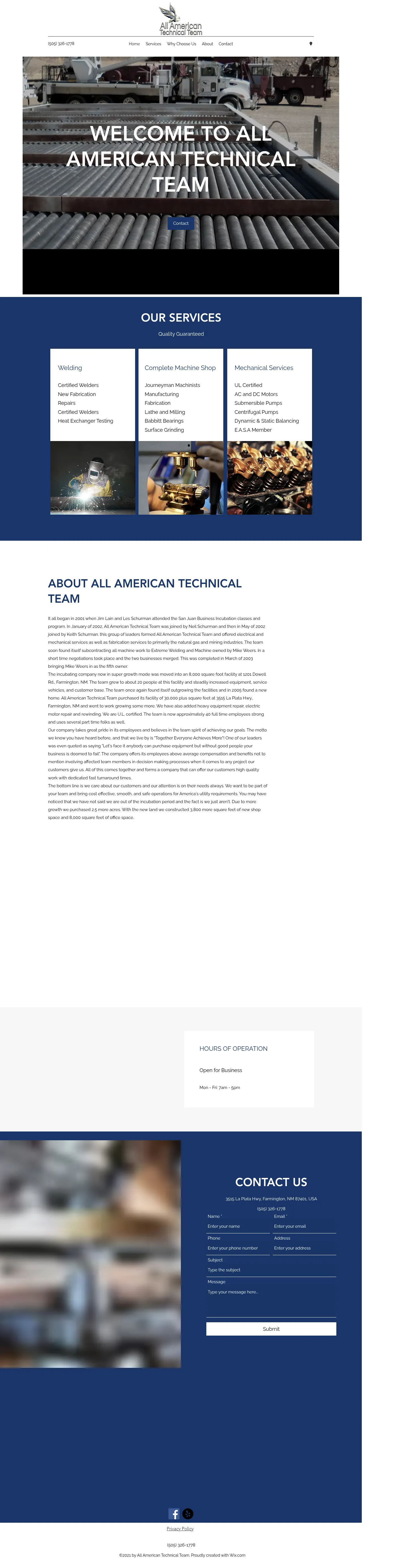 All American Technical Team is a full-service industrial machine shop based in Farmington, New Mexico, providing mechanical, electrical, and fabrication services. Established in 2001, the company specializes in support for the natural gas and mining industries, offering expertise in equipment repair, precision machining, and specialized welding. Their facility capabilities include onsite machining, laser alignment, heat exchanger maintenance, and motor repair. The team maintains a strong focus on rapid turnaround times and high-quality industrial solutions. They support diverse utility requirements with a workforce of certified welders and journeyman machinists.