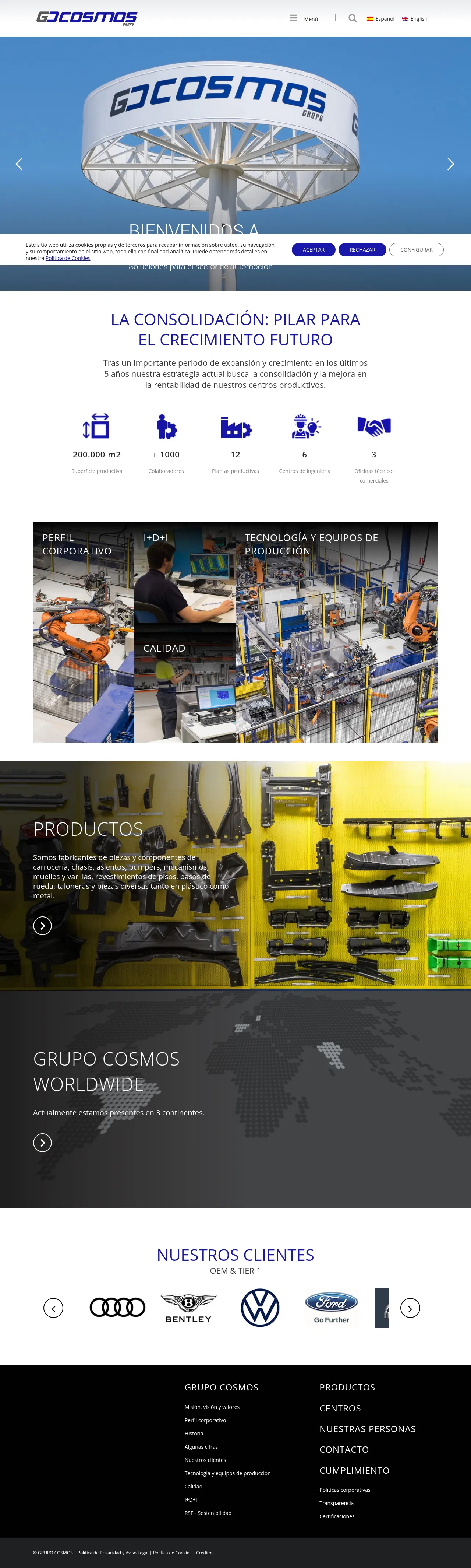 Grupo Cosmos is a multinational manufacturing company specializing in the production of automotive components and sub-assemblies. The company offers a wide range of metal and plastic parts, including chassis components, door mechanisms, bumpers, springs, and interior vehicle trim. They serve the automotive industry with capabilities in stamping, robotic welding, plastic injection molding, and complex assembly. Committed to quality and technological innovation, the group operates across multiple global sites to provide integrated, Just-In-Time supply chain solutions for major automotive manufacturers.