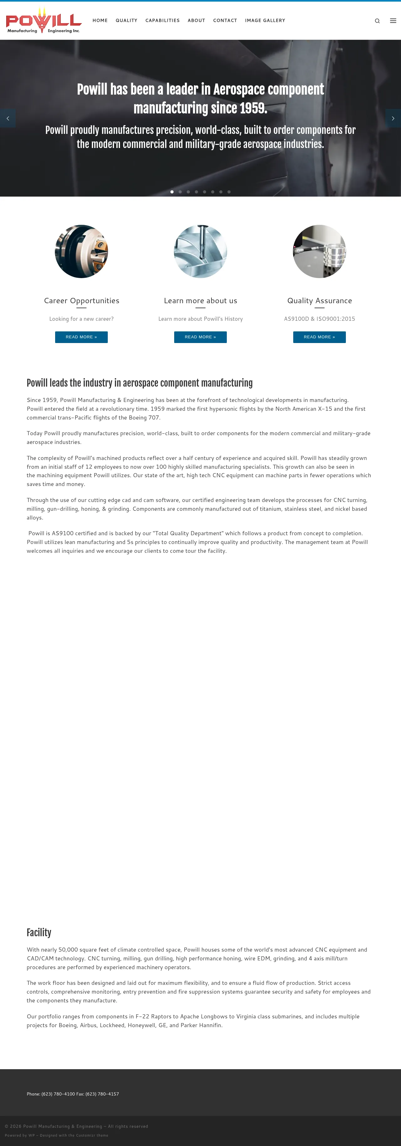 Powill Manufacturing is a precision machining company specializing in the production of complex, build-to-order components for the commercial and military aerospace industries. Established in 1959, the company utilizes advanced 5-axis machining, hard turning, and precision grinding to serve high-profile clients including Boeing, Lockheed, and GE. Their facility is engineered for high-security production and features a temperature-controlled clean room for final inspection. With an internal engineering department utilizing GibbsCAM, the company supports projects from initial concept through to final assembly and testing. Their manufacturing capabilities emphasize close-tolerance work on space-age alloys, supported by a rigorous quality control framework.