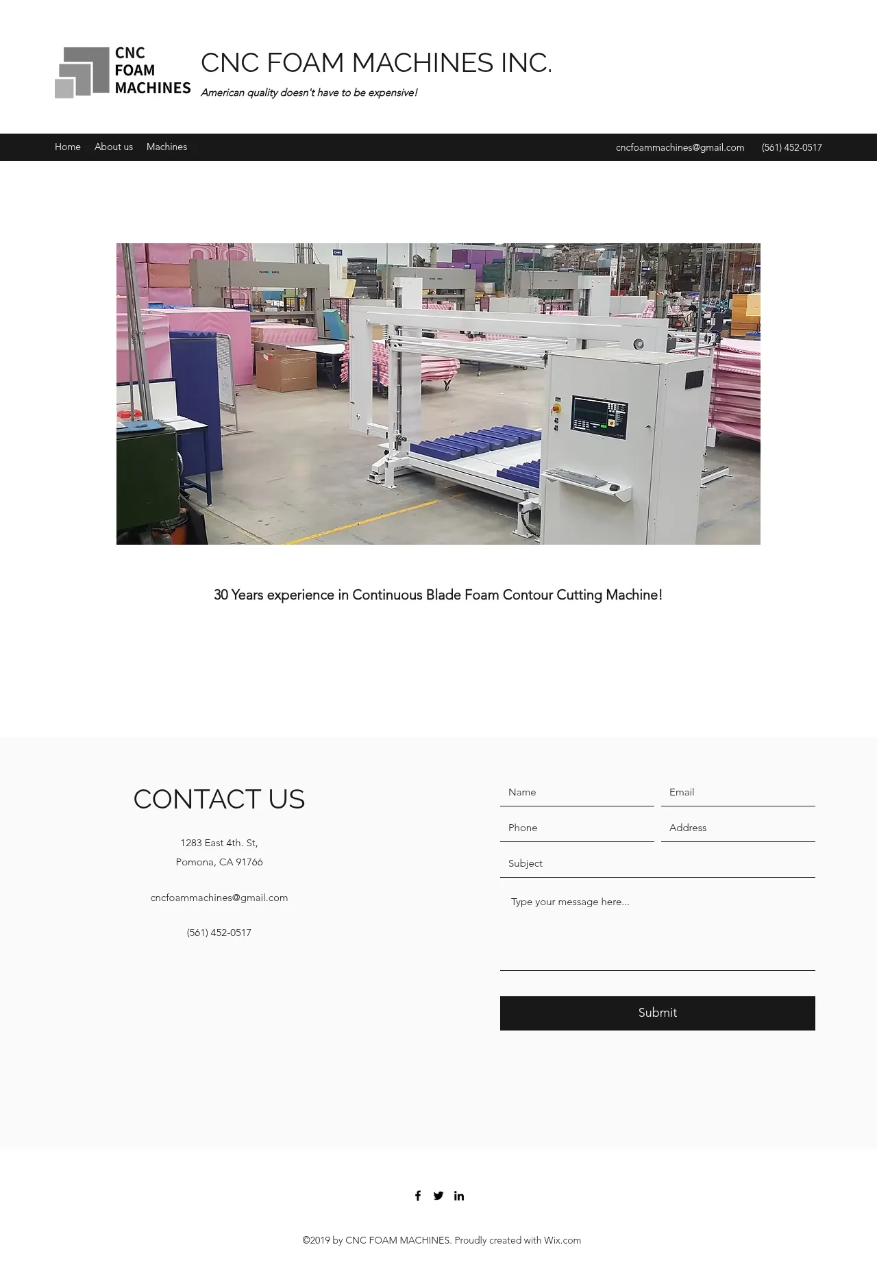 1283 4th St, Pomona, CA 91766, USA, Pomona, California, United States(561) 452-0517cncfoammachines@gmail.comhttp://cncfoammachines.com/