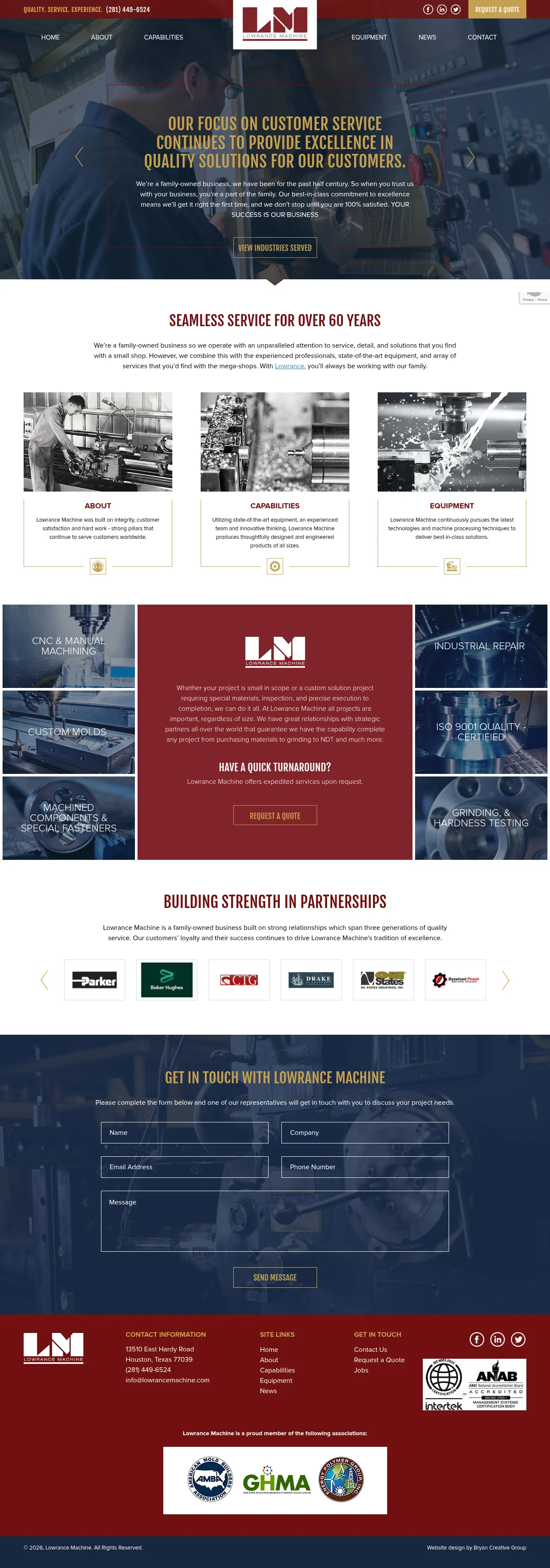 Lowrance Machine is a family-owned manufacturing company based in Houston, Texas, with over 60 years of experience in custom mold building and precision machining. The company serves a diverse range of international industries, including aerospace, medical, and industrial sectors, providing services from design and engineering to final production. Their core capabilities include CNC electrode machining, press rebuilds, and a wide array of specialized surface treatments and testing processes. The firm is known for maintaining a balance between personalized, small-shop service and the capacity to handle large-scale, complex projects. They prioritize quality control through rigorous inspection and oversight to ensure all products meet exact client specifications.