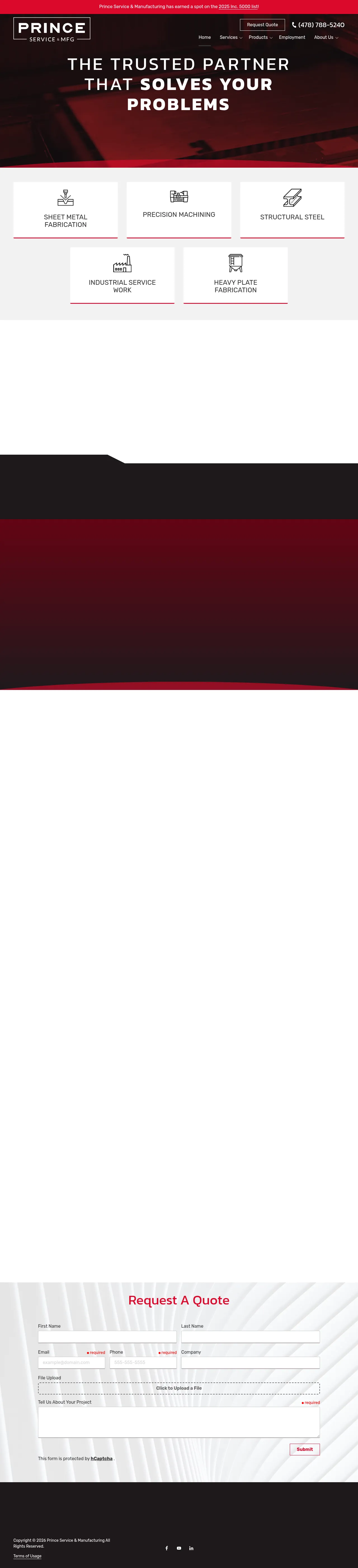 Prince Service is an industrial manufacturing firm specializing in precision machining, custom fabrication, and structural steel production. The company serves a diverse range of sectors, including aerospace, defense, and power generation, providing solutions that span from small precision components to heavy-plate structures. Their facilities are equipped with advanced CNC machinery, including multi-axis mills and lathes, laser and waterjet cutting systems, and robotic welding stations. With a commitment to continuous improvement and high-quality standards, the company leverages expert engineering and modern software to manage complex projects from concept to final assembly. Prince Service maintains a focus on building long-term customer partnerships through reliable performance and manufacturing versatility.