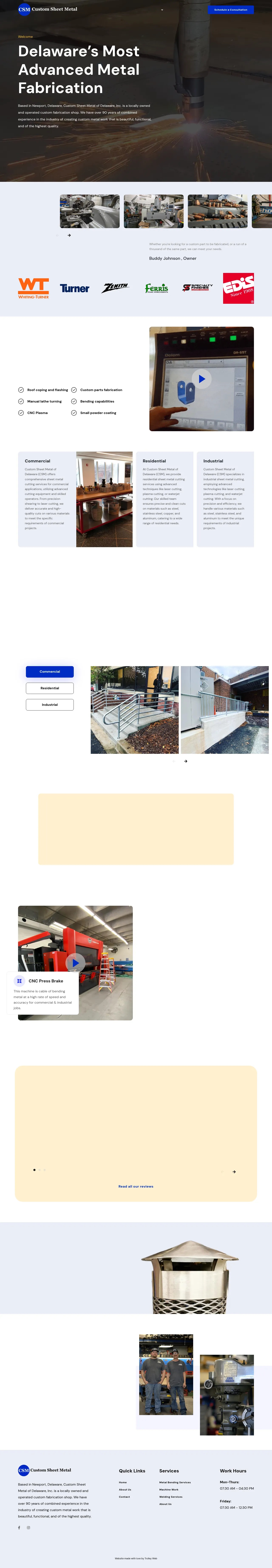 Custom Sheet Metal of Delaware is a family-owned and operated fabrication shop based in Newport, Delaware, with over 90 years of combined industry experience. The company provides a comprehensive suite of metal processing services, including precision cutting, welding, bending, and machining for industrial, commercial, and residential applications. Their facility is equipped with advanced CNC plasma cutters, high-performance press brakes, and various milling machines to accommodate complex design requirements and high-volume production runs. They specialize in both TIG and MIG welding techniques, ensuring high-quality finishes for structural elements and decorative components. The firm maintains a strong focus on craftsmanship and technical precision to deliver customized solutions for unique architectural and structural project needs.