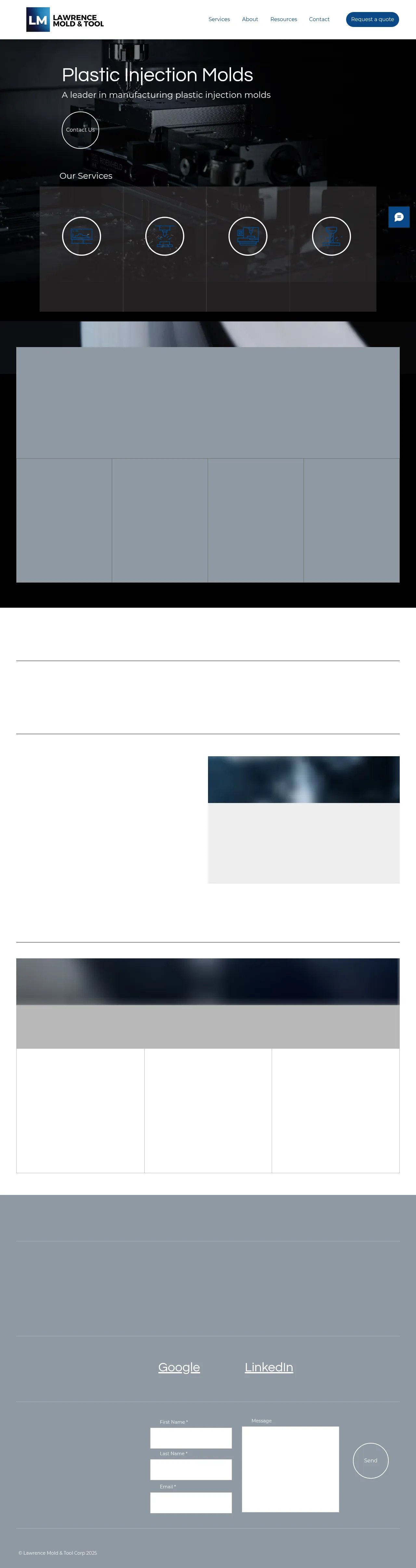 Lawrence Mold and Tool Corp. is a specialized manufacturer of plastic injection molds with over 50 years of industry experience. The company provides design and fabrication services for both single and multi-cavity tooling, focusing on high-precision outcomes for various industrial sectors including medical applications. Their capabilities encompass advanced CNC machining, electrical discharge machining, and in-house mold maintenance solutions. They emphasize technological integration and consistent quality to support domestic tooling production requirements. Clients receive technical support from initial concept through to final tool validation.