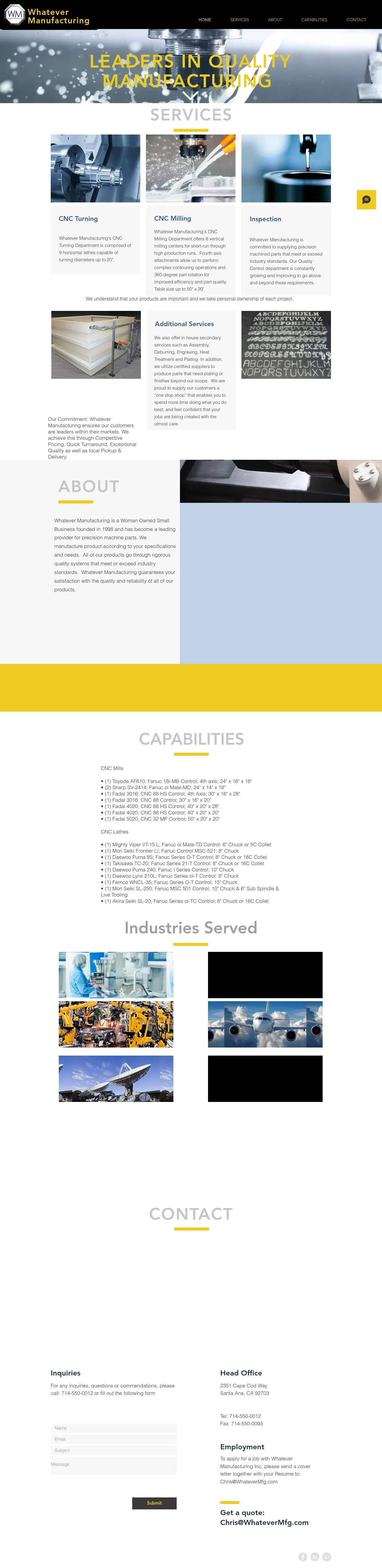 Provides precision CNC milling and turning services for the automotive, aerospace, testing and medical industries. Operates a variety of CNC lathes and milling centers and fabricates components from plastics such as polypropylene. Founded in 1998 and based in Santa Ana, CA, the company reports completing over 10,000 jobs.