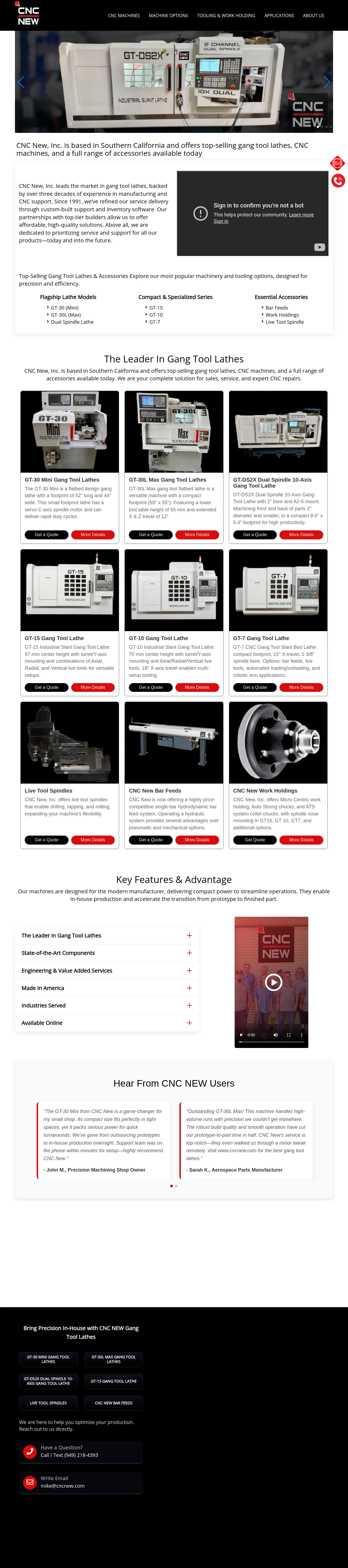 CNC New, Inc. is a Southern California-based supplier of gang tool lathes, CNC machines, and related accessories. The company offers equipment sales, spare parts inventory, and machine service developed from over three decades of industry experience since 1991. It also provides CNC programming training and turnkey, production-ready machine solutions.