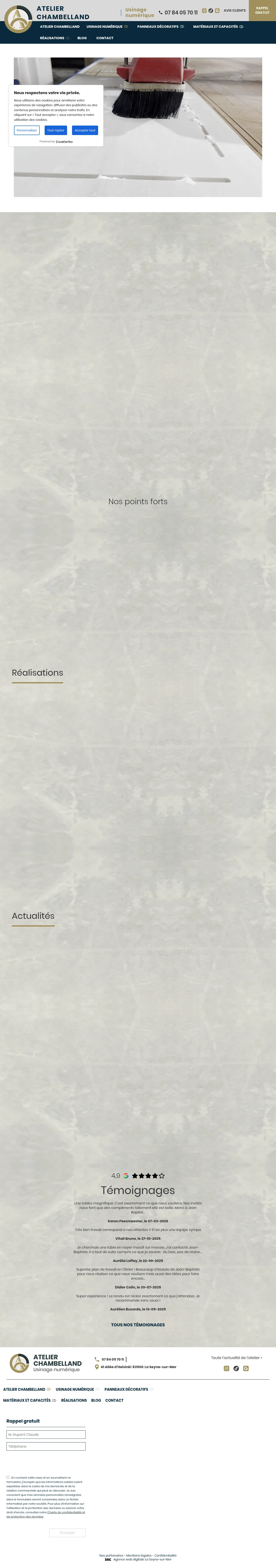 Atelier Chambelland is a specialized manufacturing company based in La Seyne-sur-Mer, France, focusing on precision CNC machining and the creation of bespoke decorative panels. They provide high-accuracy 2D, 2.5D, and 3D cutting services for a wide variety of industrial and architectural projects across France and Europe. The company is highly regarded for its ability to produce complex textures, custom signage, and detailed surface engravings. By combining advanced digital manufacturing techniques with expert craftsmanship, they deliver tailored solutions for both professional and individual clients. Their services range from intricate component assembly to the fabrication of unique interior architectural elements.