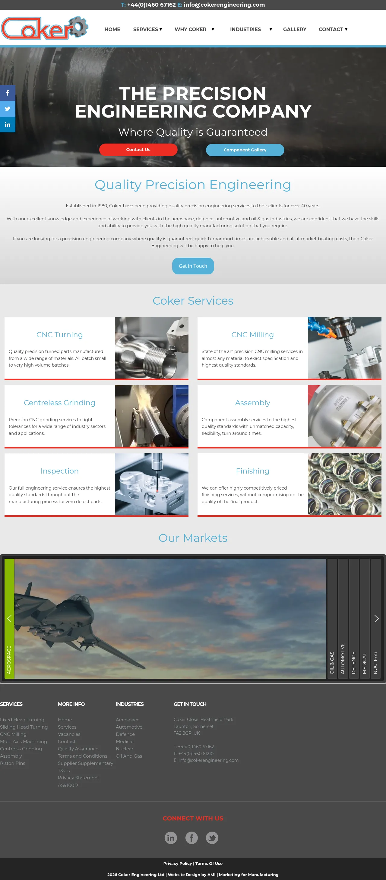 Coker Engineering is a precision sub-contractor based in Somerset, England, specializing in high-volume and small-batch manufacturing. The company operates a 2100m² facility equipped for turning, milling, grinding, welding, and assembly. They serve a broad range of sectors including the aerospace, automotive, defence, medical, and nuclear industries. With over four decades of experience, the firm provides complex component machining, including hard turning and micro-finishing. They distinguish themselves through a commitment to quality management systems and a robust supply chain to support lean delivery requirements.