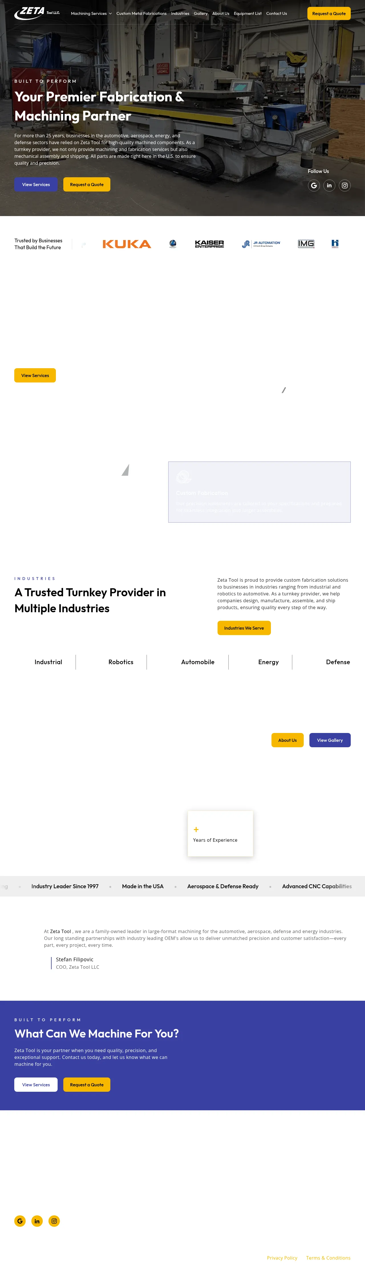 Zeta Tool is a family-owned U.S. manufacturer specializing in large-format machining and custom fabrication services. Established in 1997, the company provides turnkey solutions including precision machining, mechanical assembly, and shipping for industries such as automotive, aerospace, defense, robotics, and energy. Their 14,000-square-foot facility is equipped with advanced boring mills and CNC technology to handle complex geometries and high-strength materials. The company maintains a focus on quality through a certified management system and offers services ranging from prototype development to full-scale production runs. They are dedicated to delivering consistent accuracy and professional support for mission-critical components.