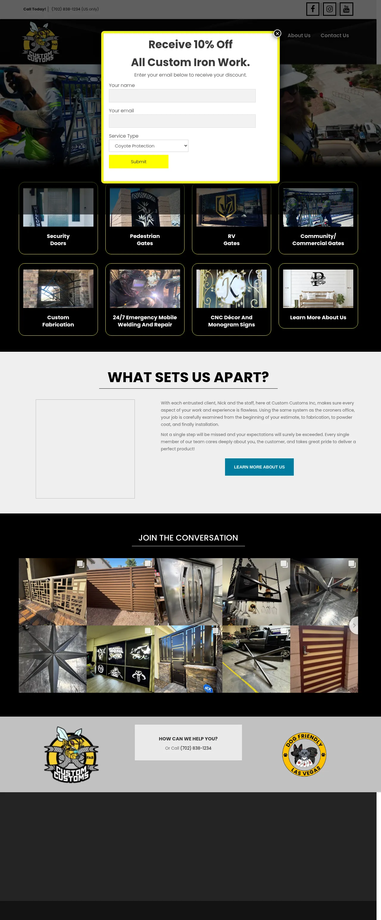 Custom Customs Inc. fabricates and installs security doors, pedestrian and vehicle gates, and custom metalwork. The company offers CNC-produced decorative and monogram signage as well as CNC security door inlays. Services include fabrication, powder-coating finishes and on-site installation. Projects are managed from estimate through installation to ensure consistent quality control.