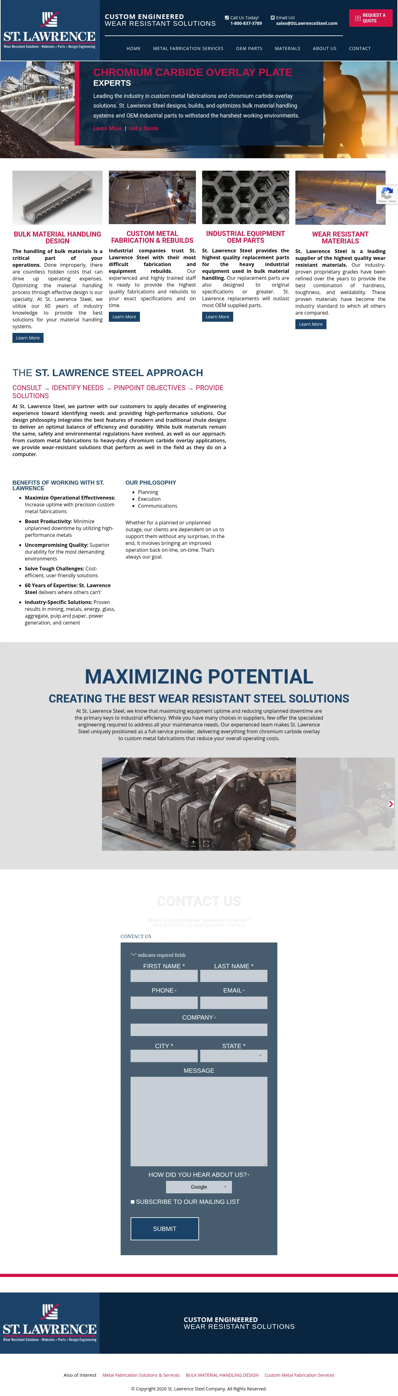 St. Lawrence Steel specializes in custom metal fabrication and the professional rebuilding of heavy industrial equipment. The company provides cost-effective alternatives to purchasing new parts by restoring worn components for various industrial sectors. Key capabilities include the application of wear-resistant surface solutions, custom fabrication, and the refurbishment of material handling and processing equipment. Their expertise extends to industrial fans, crushing rotors, and mobile equipment components. By leveraging advanced materials and engineering, the firm focuses on extending the operational lifespan of critical machinery.