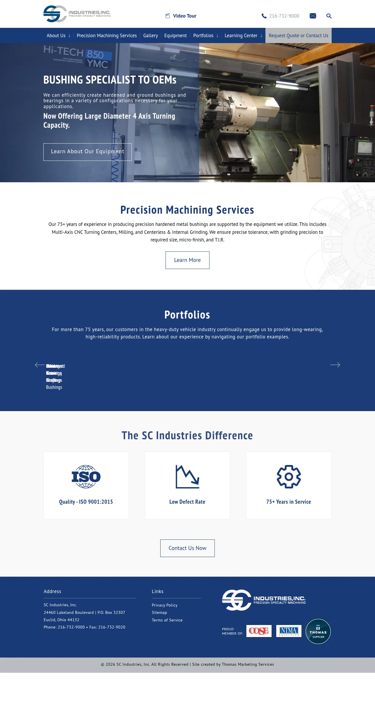 SC Industries, Inc. is a precision manufacturer specializing in the production of hardened and ground bushings, bearings, and related metal components. With over 75 years of experience, the company serves a diverse range of sectors, including mining, heavy-duty vehicle manufacturing, hydraulics, and industrial transportation. Their core capabilities include large-diameter 4-axis turning, precision machining, centerless grinding, and oil-grooving. The company utilizes advanced CNC technology and maintains stringent quality inspection protocols to ensure high-reliability products for demanding industrial applications. They offer rapid response to requests for quotation and maintain electronic data interchange capabilities to streamline customer communication.
