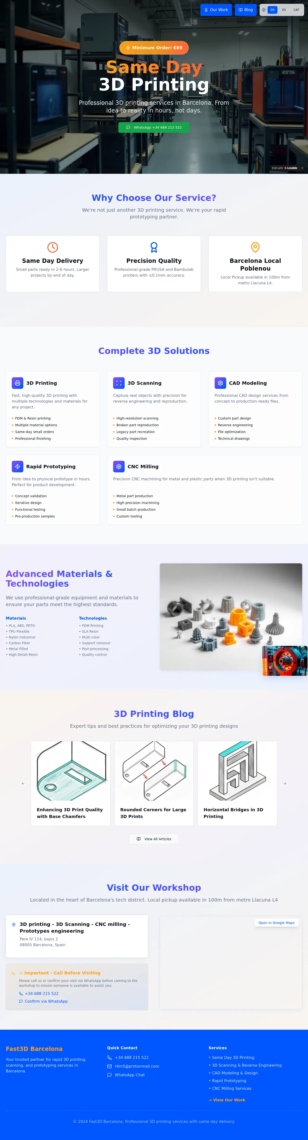 Based in the Poblenou district of Barcelona, 3d-printing.cat specializes in rapid prototyping and additive manufacturing services. The company provides end-to-end support for product development, including CAD design, high-resolution 3D scanning, and reverse engineering. Their production capabilities span FDM and SLA printing, alongside CNC milling for metallic and plastic components. They serve a diverse range of sectors, including industrial yacht part manufacturing, architectural modeling, and art installation production. The company prioritizes precision and fast turnaround times to assist clients from the initial conceptual stage through to final production-ready parts.