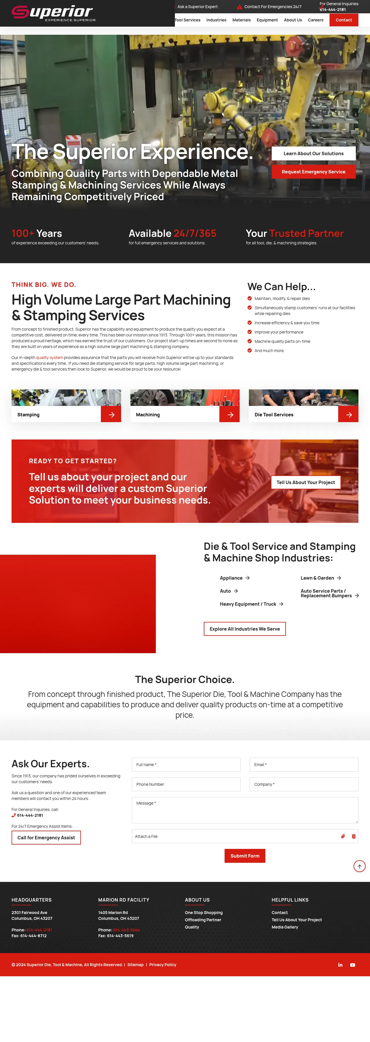 Superior Die Tool is an industrial manufacturing firm with over a century of experience in metal stamping and die maintenance. The company serves the automotive, heavy equipment, and appliance sectors by providing both production stamping and specialized die repair services. Their capabilities include CNC machining, robotic and manual transfer stamping, and process development. Operating from Columbus, Ohio, they function as a one-stop manufacturing partner for high-quality metal components. The company maintains a commitment to project-specific solutions and provides 24/7 emergency support for time-critical manufacturing needs.