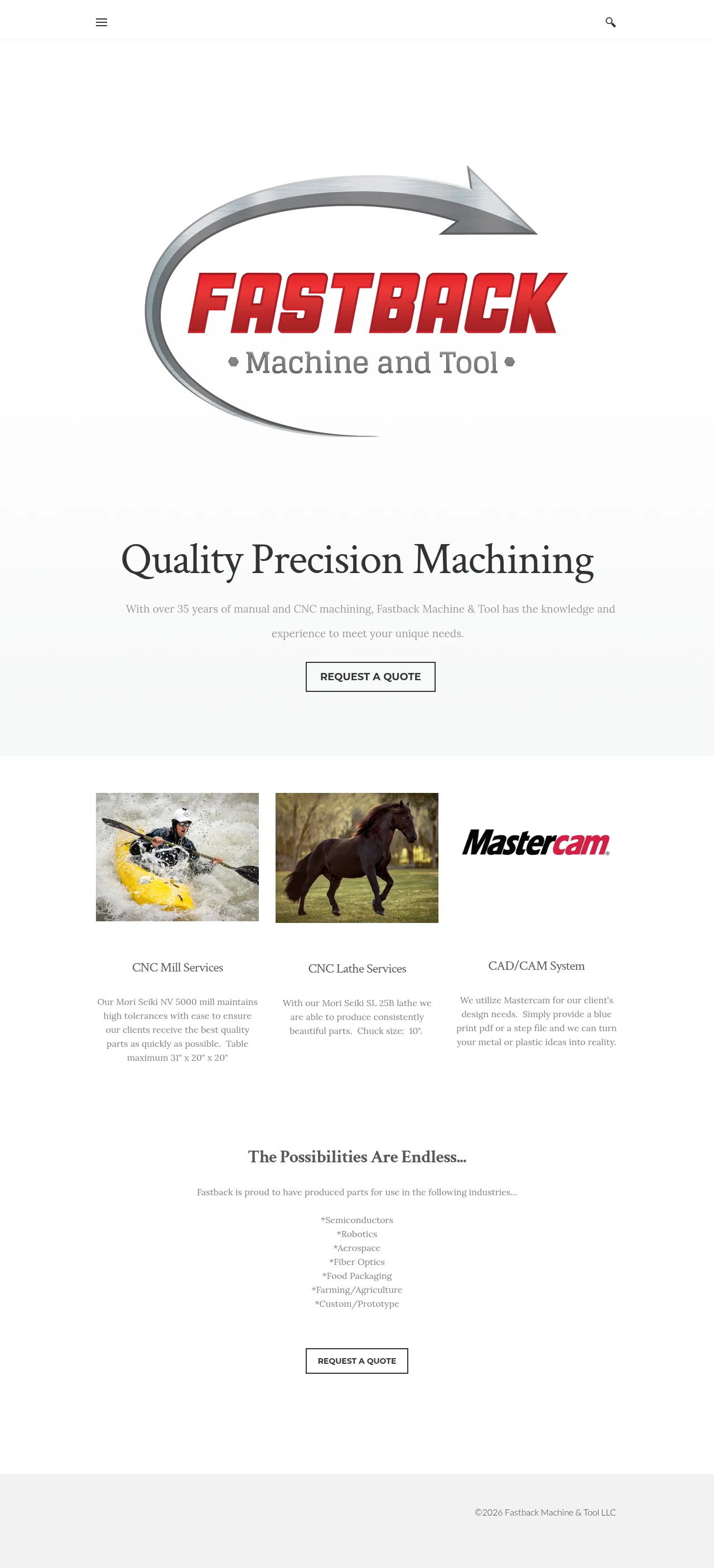 Fastback Machine is a small business specializing in high-quality precision machining services. The company provides expert CNC milling and lathe machining to support a variety of sectors, including robotics, aerospace, fiber optics, food packaging, and agriculture. Utilizing advanced CAD/CAM systems, they offer solutions ranging from custom components to prototype development. Fastback Machine focuses on delivering reliable manufacturing support to help clients realize complex design requirements. Their commitment to technical precision ensures consistency across both small-batch and specialized production runs.