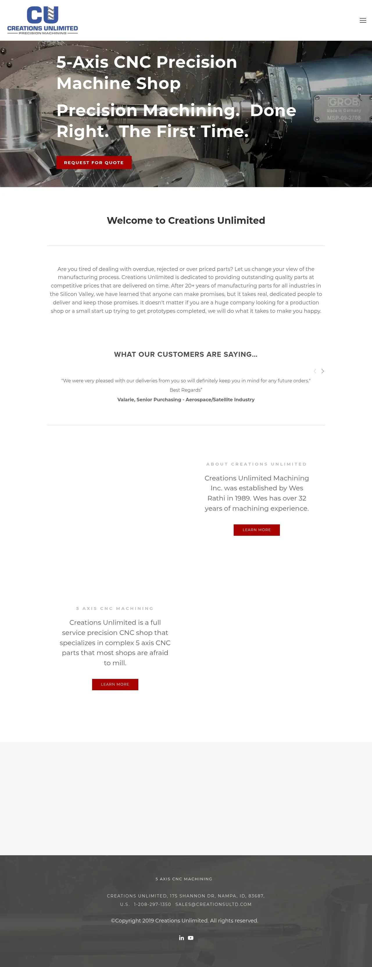 Creations Unlimited is a precision manufacturing facility specializing in complex 5-axis CNC machining, including prototype development and low-volume production. Established in 1989, the company serves a diverse client base across the aerospace, satellite, medical device, and semiconductor industries. They operate a 18,000-square-foot, temperature-controlled facility equipped with advanced CAD/CAM software and automated machinery to facilitate 24/7 operations. The business distinguishes itself through its expertise in high-complexity geometry, rigorous first-article inspection processes, and a commitment to competitive lead times. By leveraging efficient shop floor management and modern technology, they provide high-quality machined components for both independent projects and overflow work.