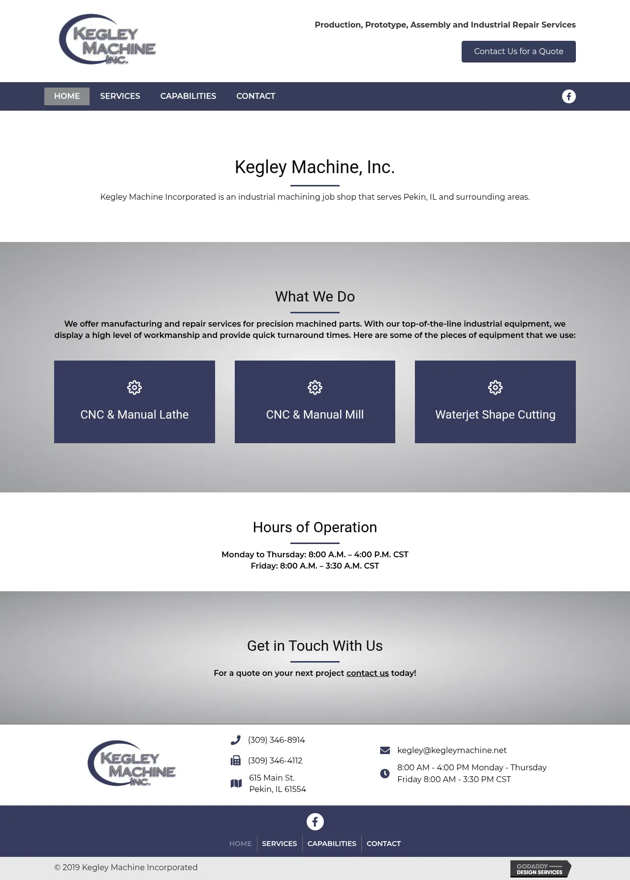 Kegley Machine Incorporated is an industrial machining job shop based in Pekin, Illinois. The company specializes in the manufacturing and repair of precision-machined parts for a variety of industrial applications. Their service offerings include production runs, prototyping, assembly, and custom shape cutting. Known for their technical workmanship, the facility provides rapid turnaround times to meet client project requirements. They serve the regional manufacturing sector with dedicated industrial machining capabilities.