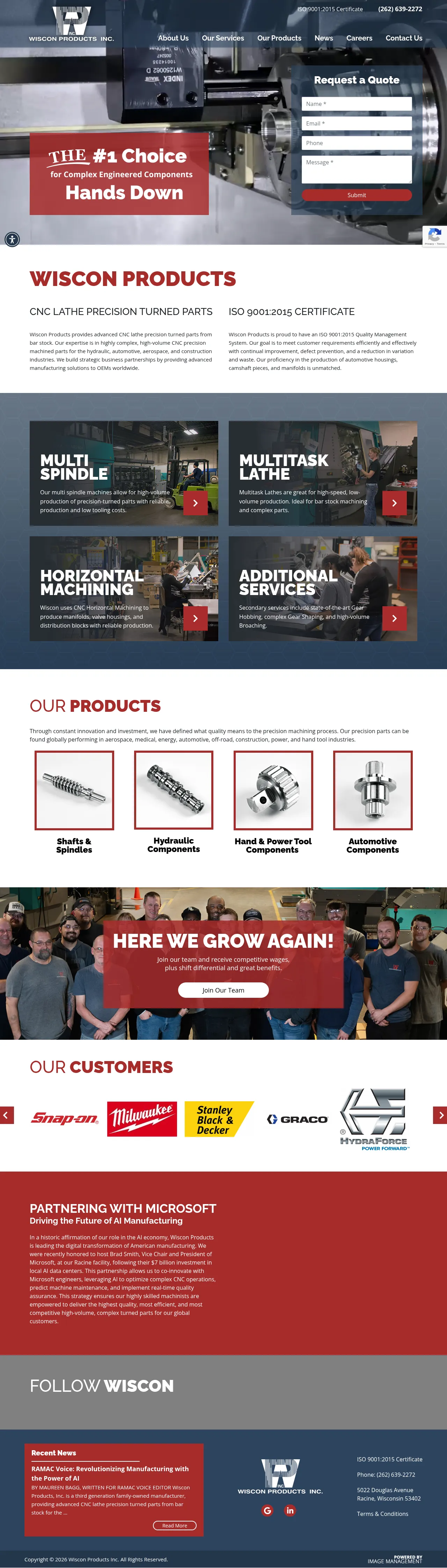 Wiscon Products, Inc. is a third-generation, family-owned contract manufacturer specializing in high-volume, precision-turned components. Utilizing advanced CNC machining technology, the company serves a diverse range of global sectors, including the automotive, aerospace, hydraulic, medical, and energy industries. Their facility features high-speed multitasking and multi-spindle lathes capable of producing complex parts from bar stock. The organization emphasizes digital transformation through the integration of AI to optimize production workflows and quality assurance. Committed to continual improvement and defect prevention, the firm maintains rigorous standards to meet the technical requirements of its OEM partners.