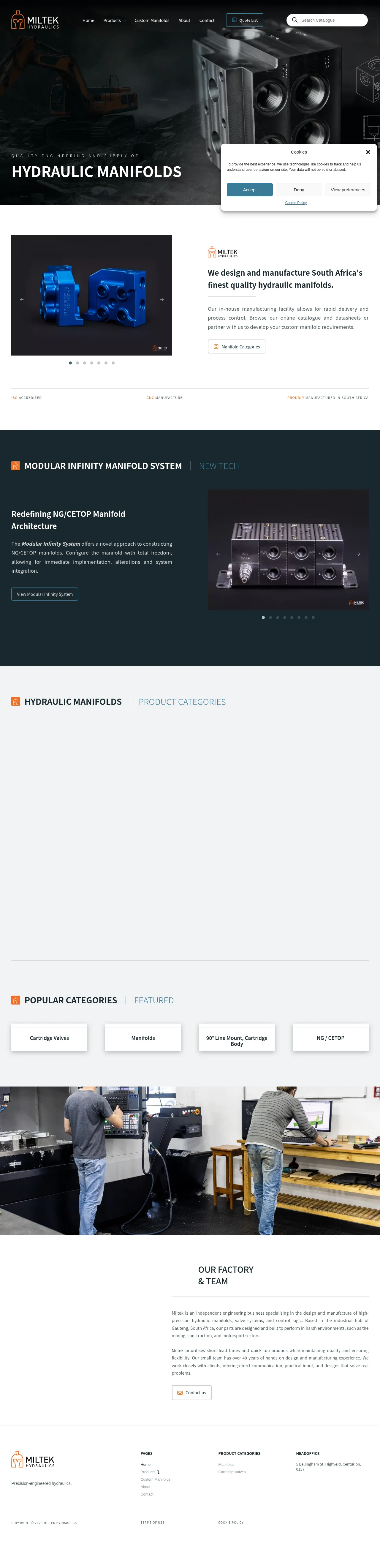 Miltek is an independent engineering firm based in Centurion, South Africa, specializing in the design and manufacture of high-precision hydraulic manifolds and valve systems. With over four decades of industry experience, the company provides robust control solutions tailored for demanding environments, including mining, construction, and motorsport. Their core capabilities include custom manifold engineering and the production of their proprietary Modular Infinity System for NG/CETOP architectures. By utilizing an in-house manufacturing facility, Miltek maintains rigorous quality control while ensuring rapid lead times for client projects. The team prioritizes direct collaboration with customers to deliver functional, problem-solving engineering designs.