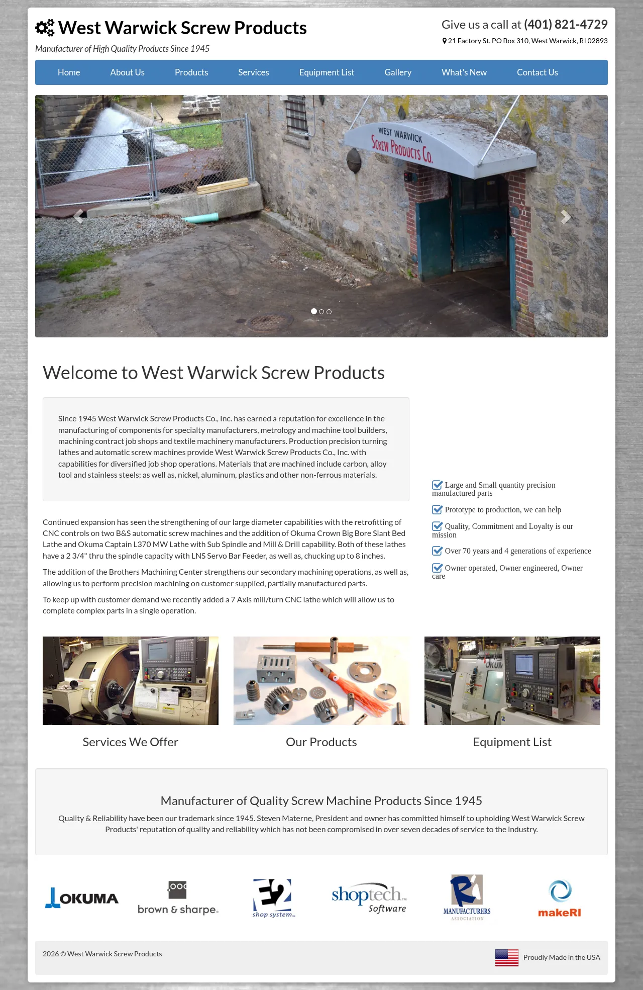 West Warwick Screw Products Co., Inc. is a family-operated precision machine shop established in 1945. The company specializes in producing high-quality machined components for industries including metrology, textile machinery, and contract manufacturing. Their production capabilities include automatic screw machining, precision turning, and secondary operations on complex parts. Operating from a facility in Rhode Island, the firm handles a wide spectrum of project volumes, ranging from small-batch prototypes to large-scale production runs. The company is committed to maintaining rigorous quality standards and provides engineering support throughout the manufacturing process.