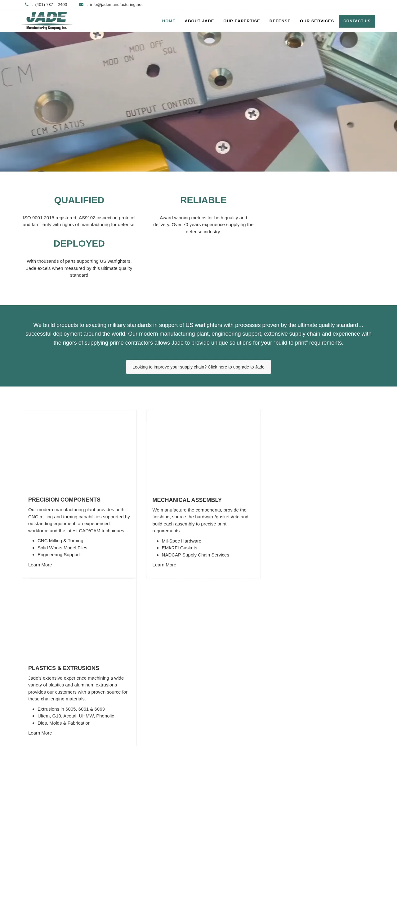 Jade Manufacturing specializes in precision build-to-print mechanical assembly and component fabrication for the defense industry. The company supports US military programs by providing hardware that meets exacting mil-spec standards. Their facility utilizes advanced CNC milling and turning technologies alongside comprehensive engineering support to manage complex projects. With extensive experience in machining diverse plastics and aluminum extrusions, the firm delivers complete, finished assemblies. Jade Manufacturing prioritizes customer satisfaction through a robust supply chain and precise adherence to client technical requirements.