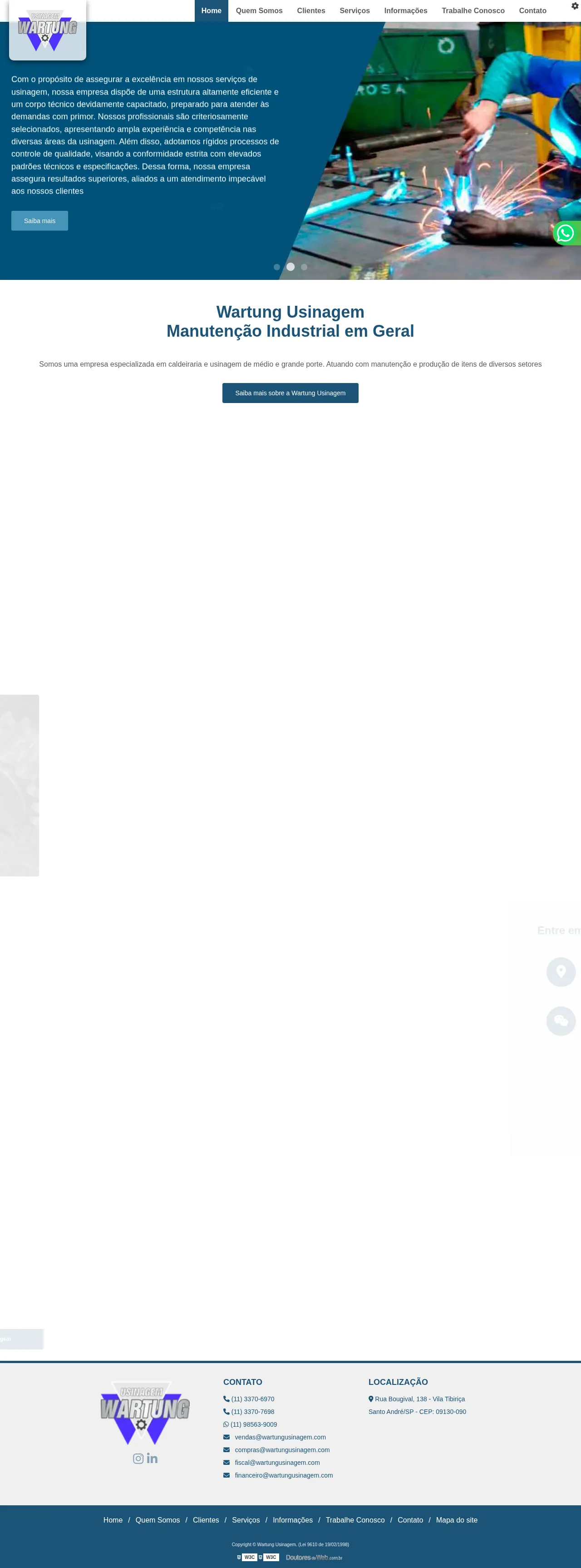 R. Bougival, 136 - Jardim Ipanema, Santo André - SP, 09130-090, Brazil, Santo André, São Paulo, Federative Republic of Brazil(11) 3370-7698vendas@wartungusinagem.comhttp://www.wartungusinagem.com/