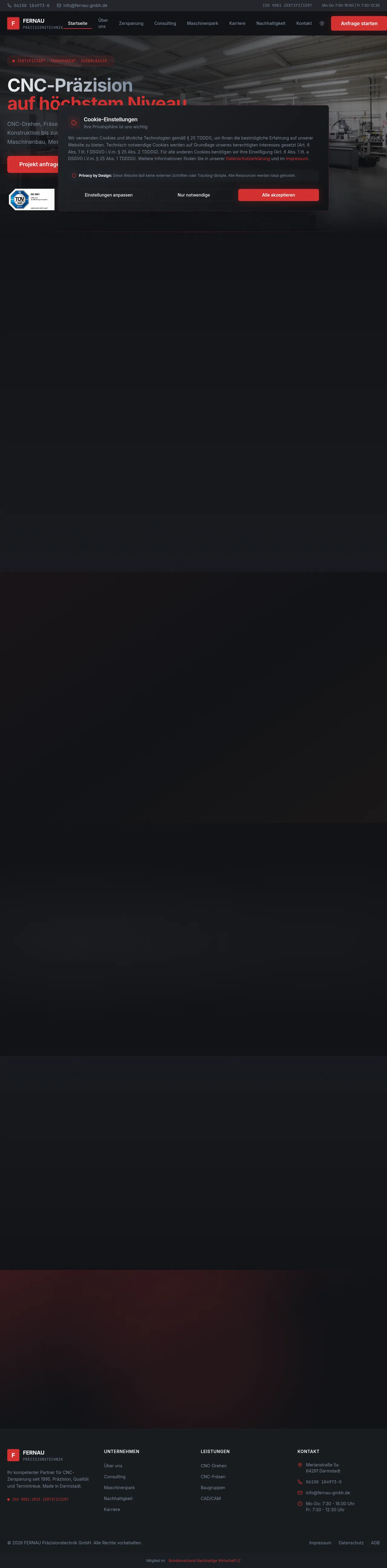 FERNAU Präzisionstechnik GmbH is an owner-operated CNC machining company based in Darmstadt, Germany. Since 1995, the firm has provided precision turning, milling, and assembly services for demanding industries including medical technology, aerospace, automotive, and energy. The company utilizes a modern machine park for 3- to 5-axis production of components ranging from individual prototypes to small-batch series. FERNAU differentiates itself through a commitment to sustainable manufacturing, supported by 100% renewable energy and carbon-neutral regional logistics. Additionally, the company provides consulting services to help small and medium-sized enterprises implement software and AI-driven solutions.