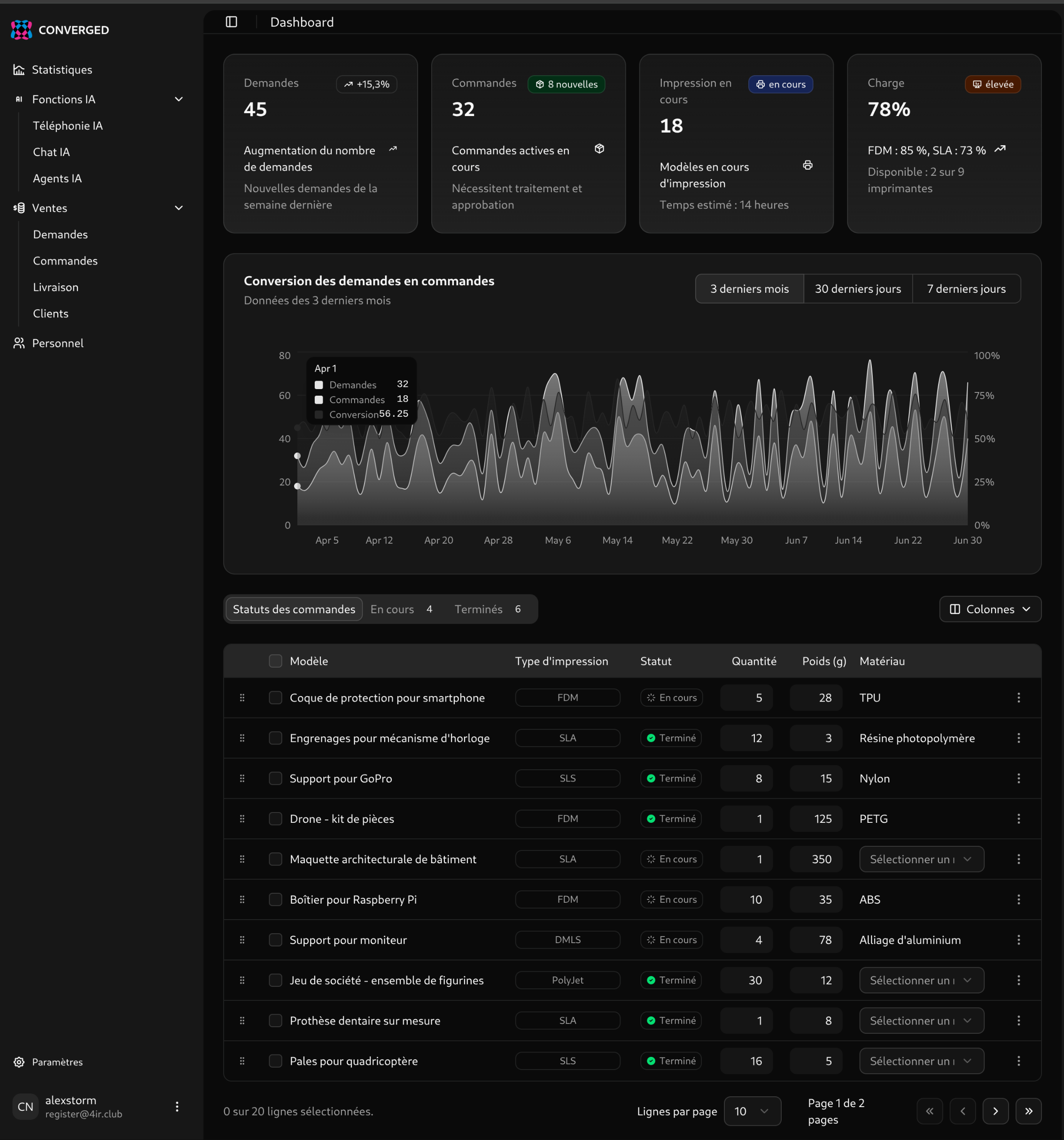 Intégration d’agents IA dans les processus métier. Prise de commandes automatique via chat IA et téléphonie pour la réception des commandes.